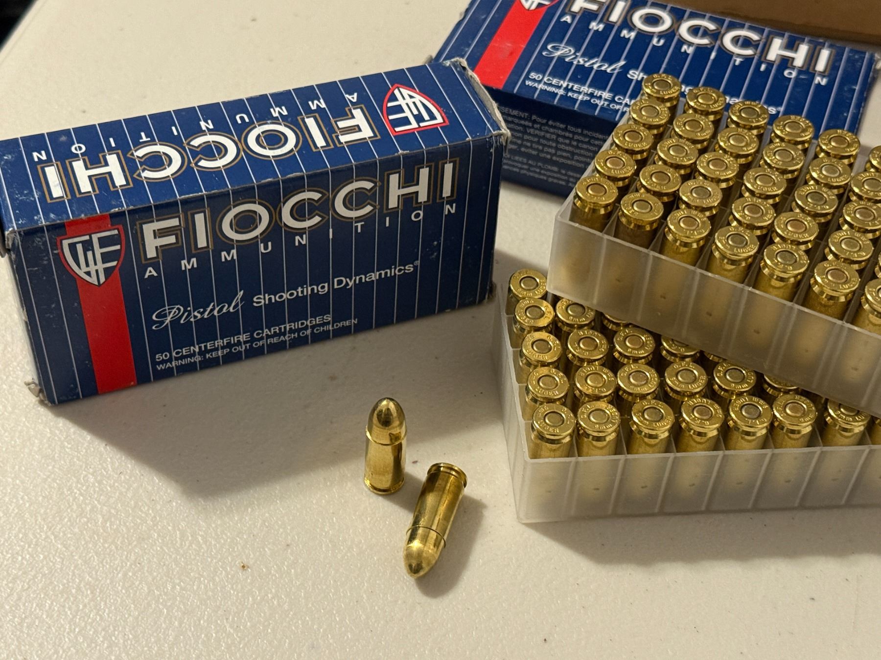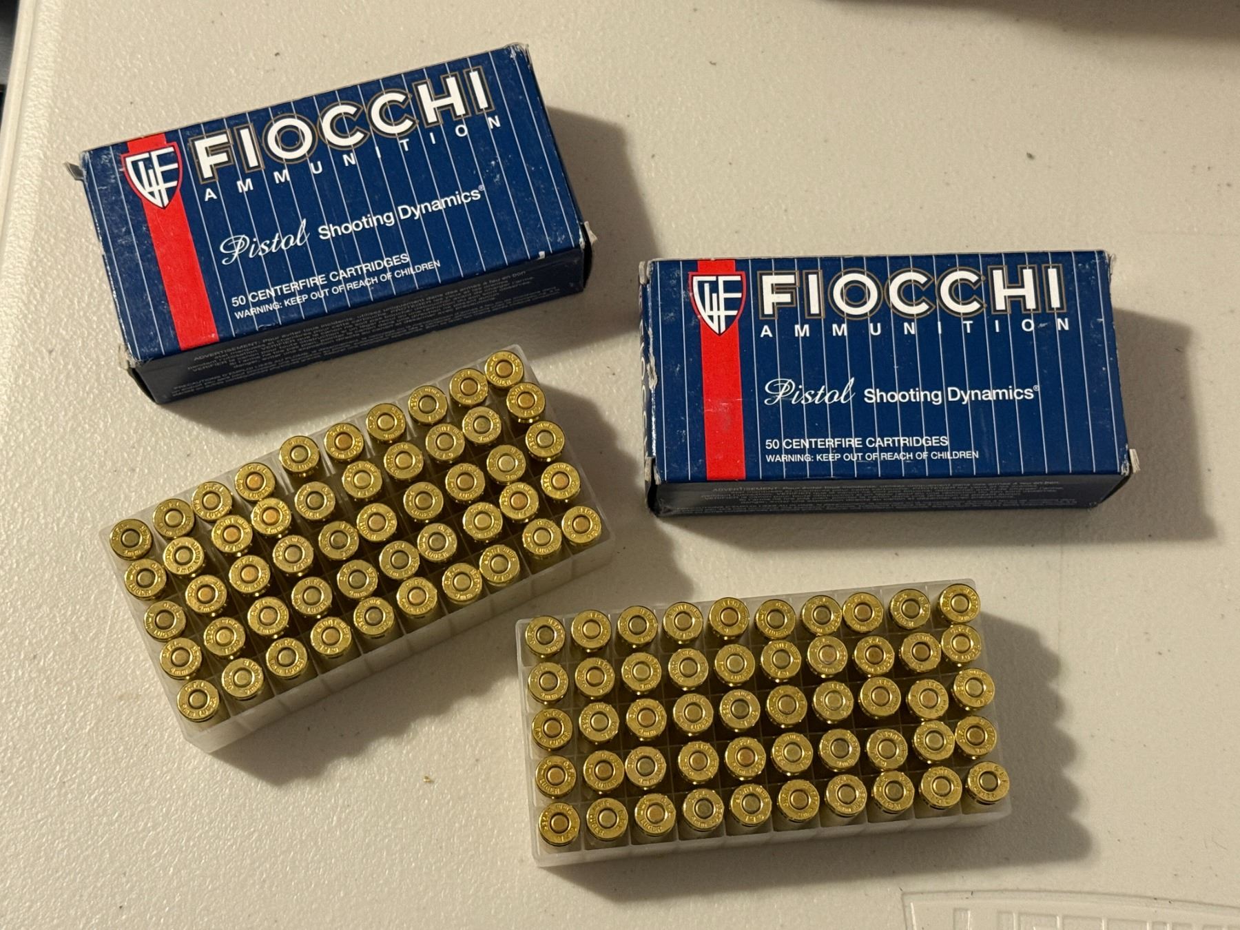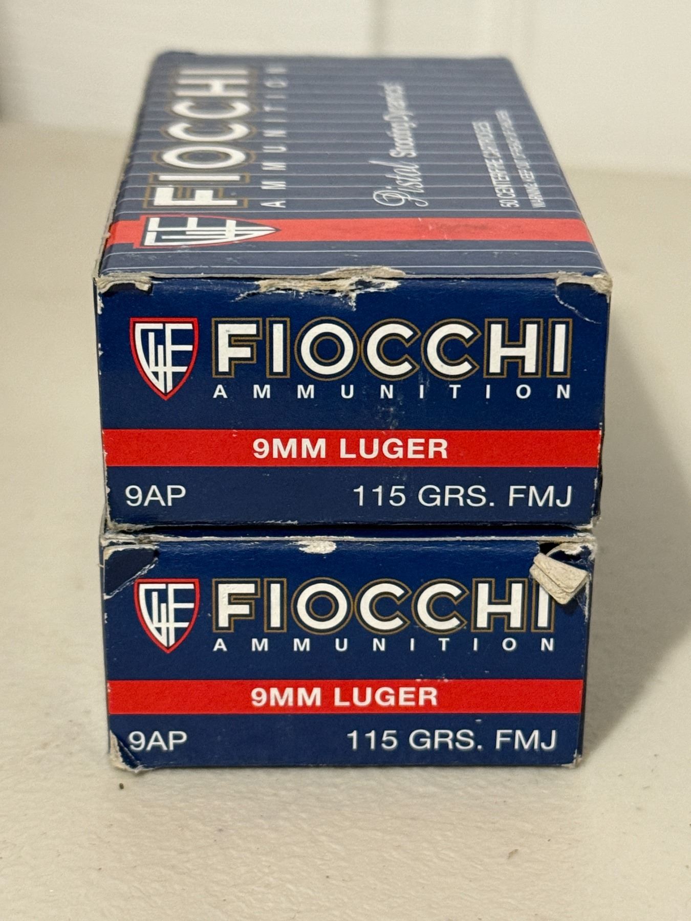 9 mm Luger 115 GRS FMJ Fiocchi Pistol Centerfire Cartridges. 2 full boxes of 50 each.