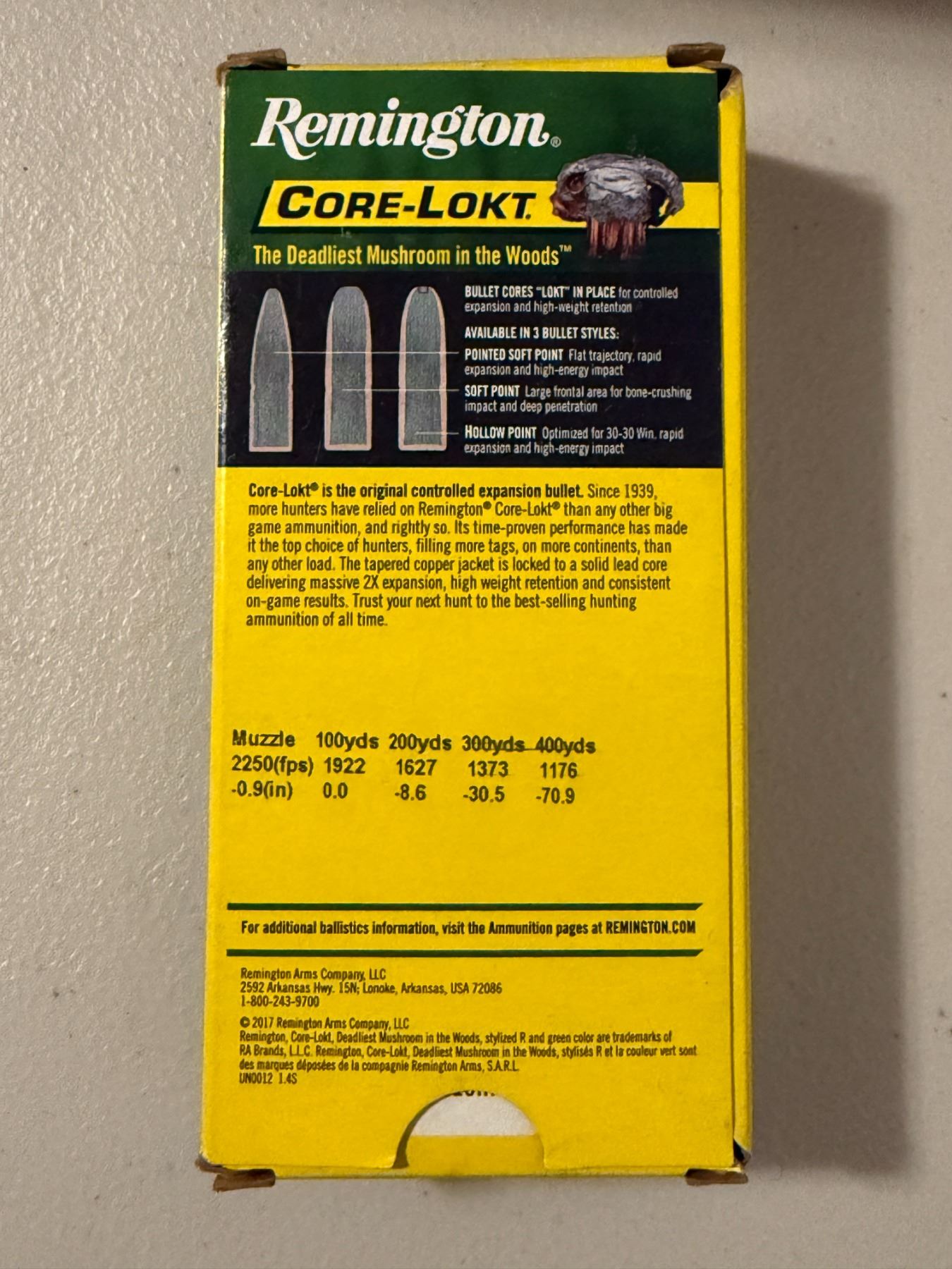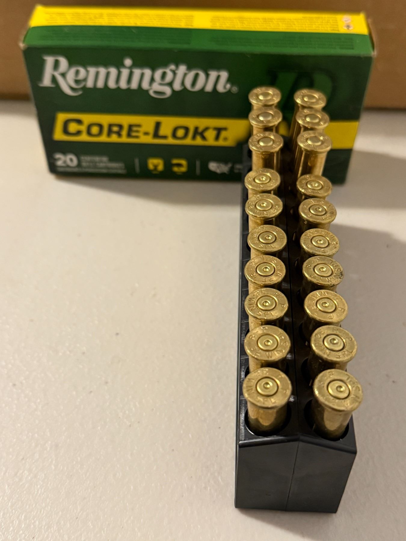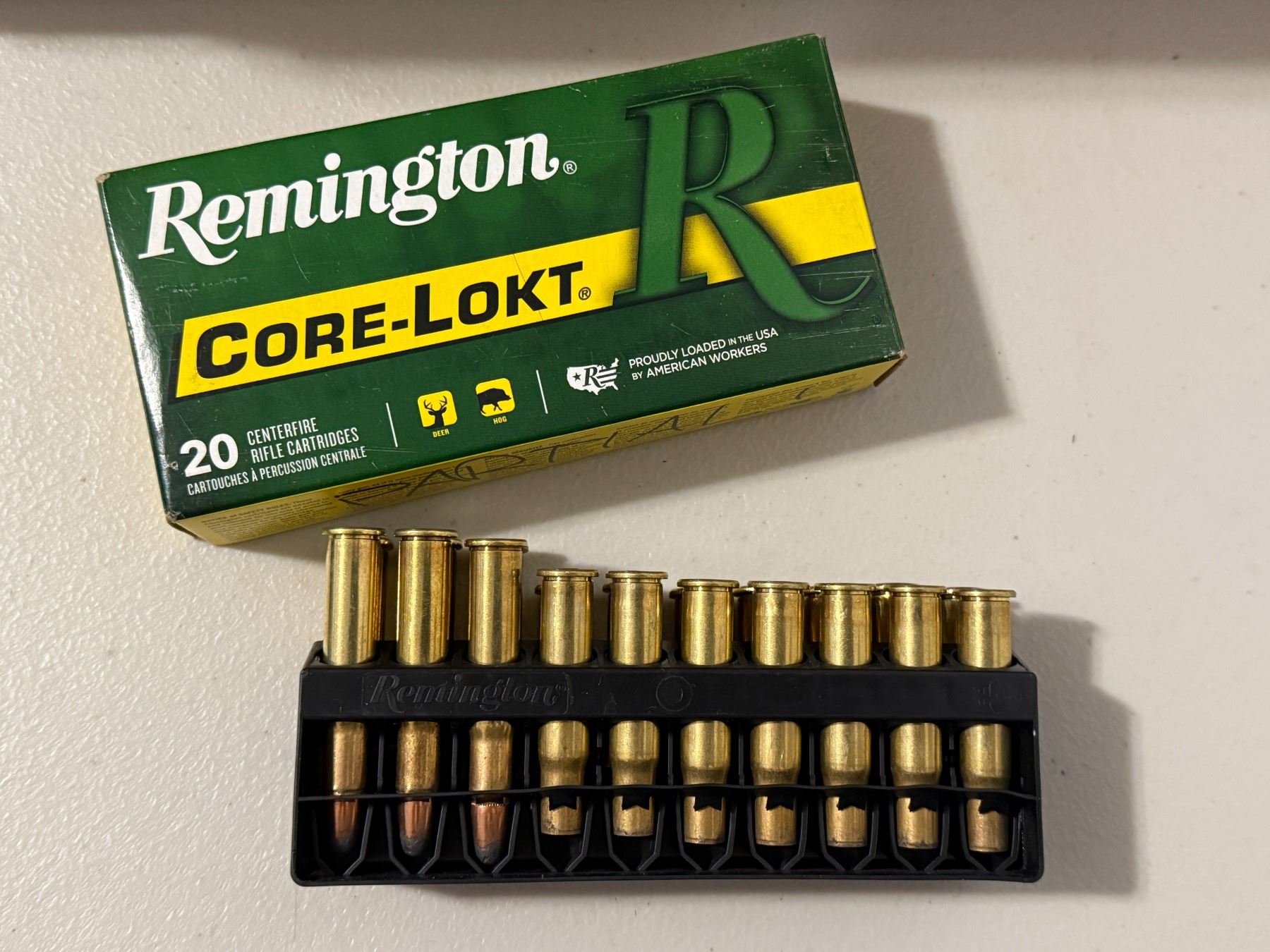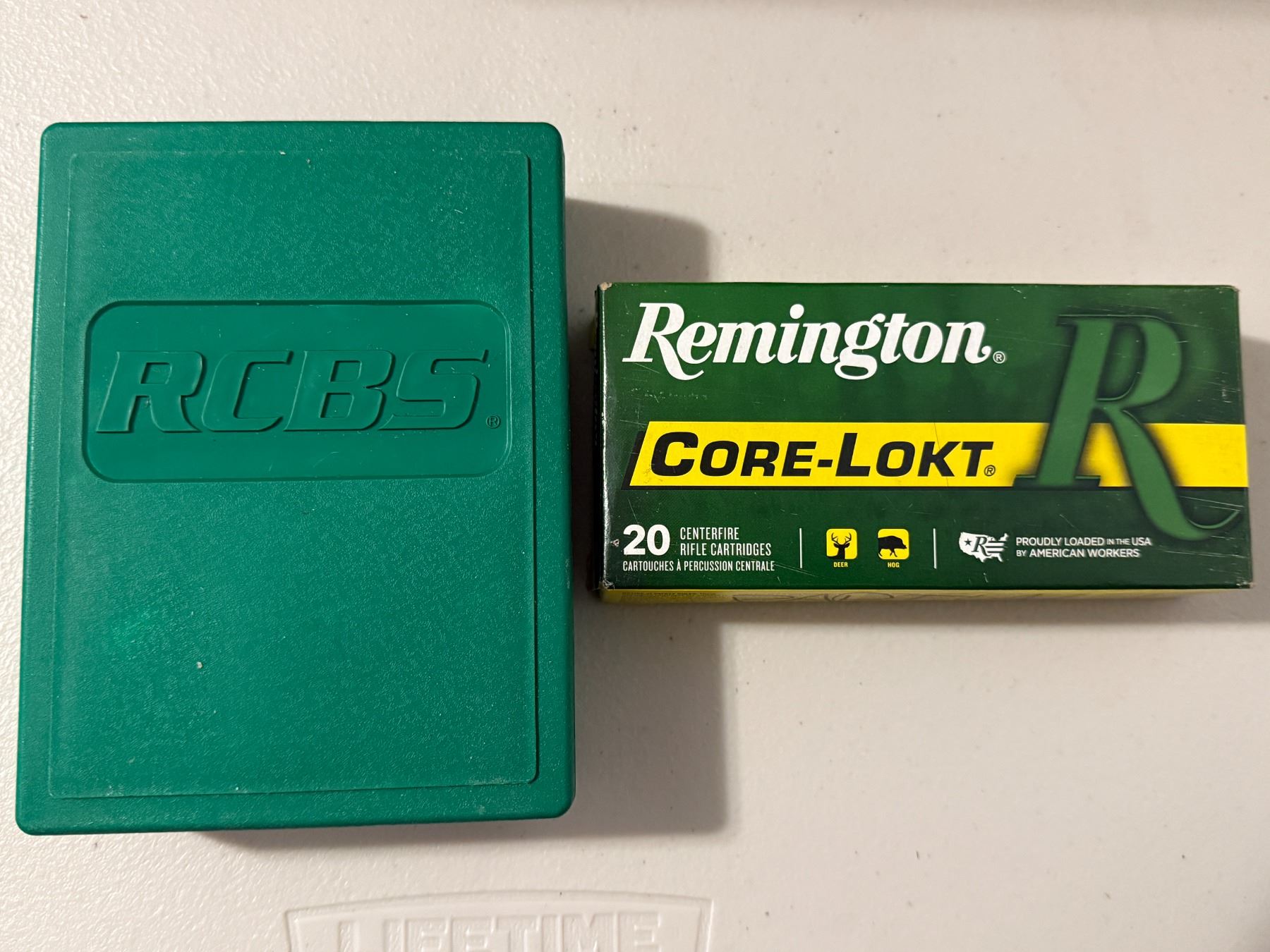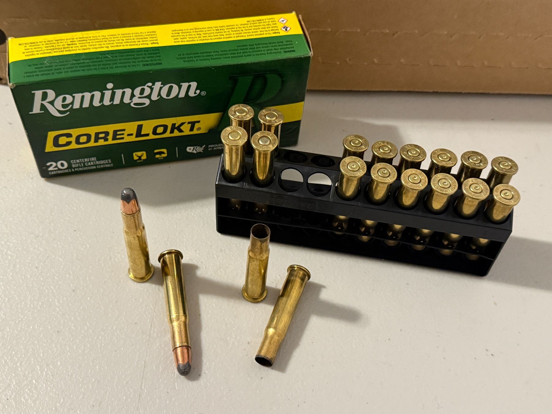 32 WIN Core-Lokt Remington. 6 cartridges, 14 casings and die set with instructions as pictured.