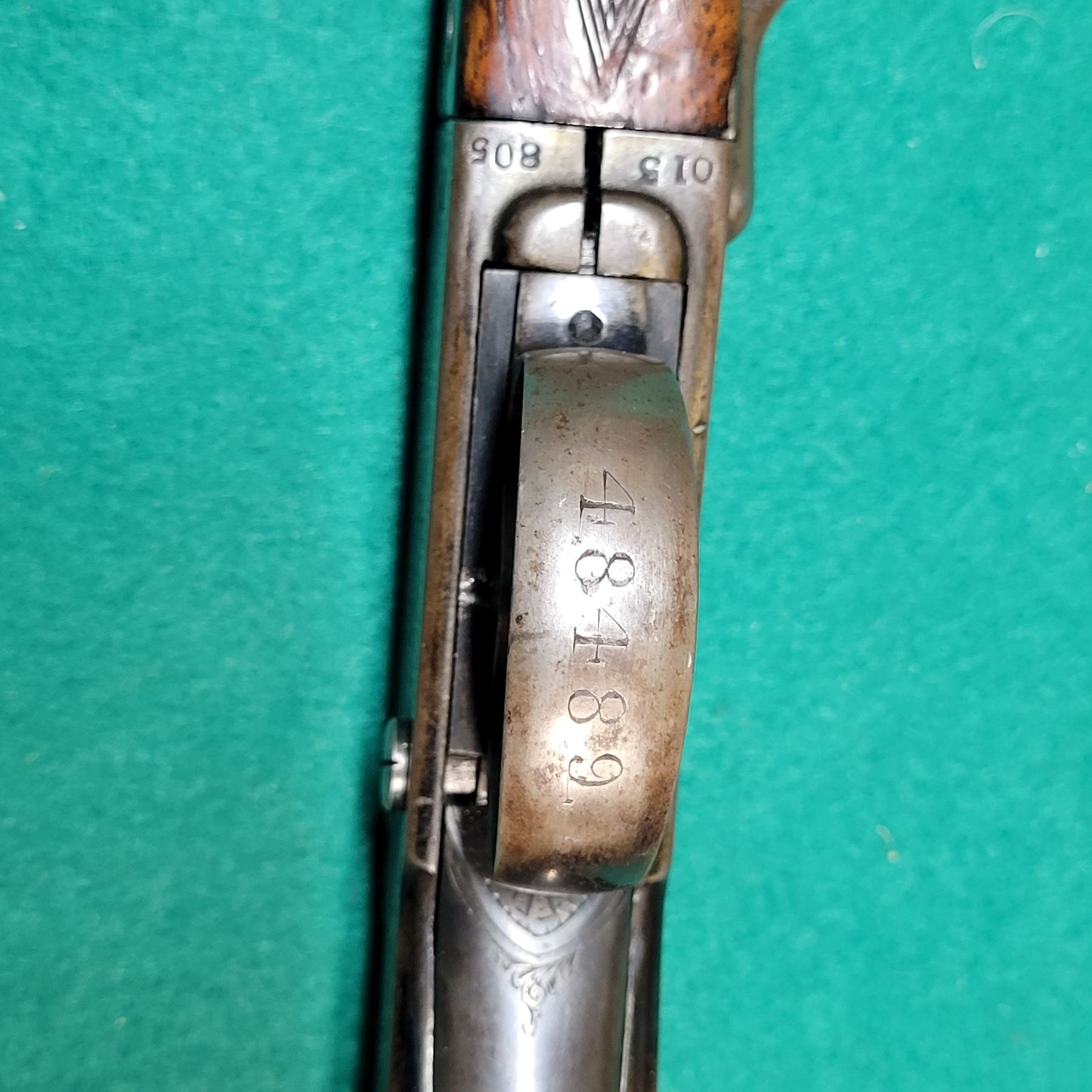 This is the takedown Model with a 26" Barrel. The bore has prominent rifling with some light frosting. The trigger guard serial number does not match the rifle.