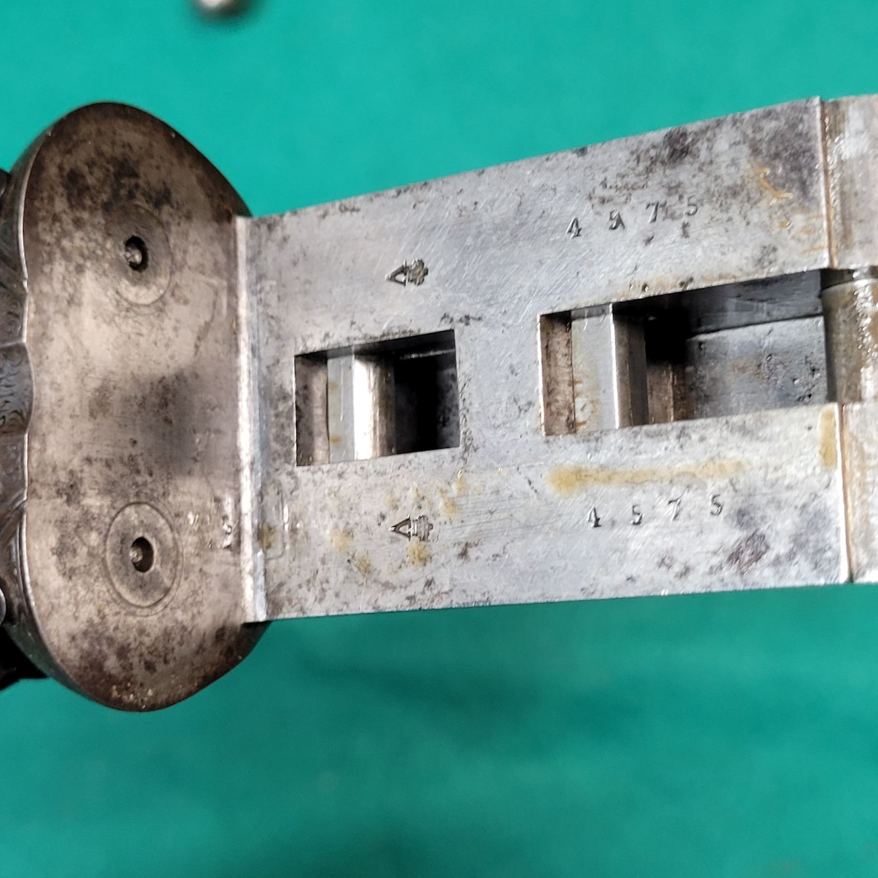 This gun has a unique trigger guard thumbhole breach opener.
