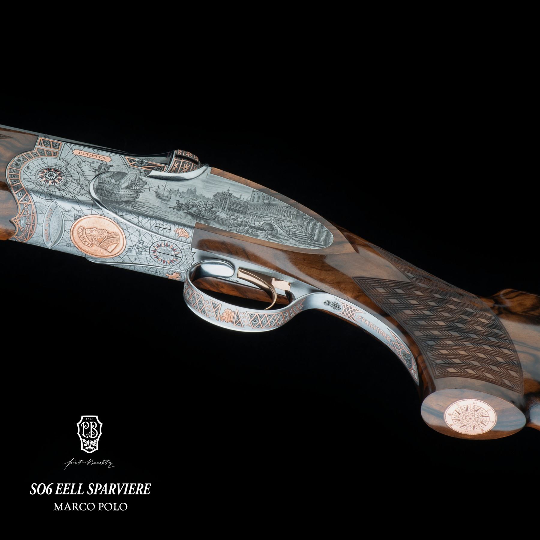 Pietro Beretta SO6 EELL Sparviere Marco Polo one of one created to honor the 700th anniversary of Marco Polo’s passing, this one-of-a-kind 12-gauge celebrates exploration and discovery through 3,500 hours of master engraving and craftsmanship.