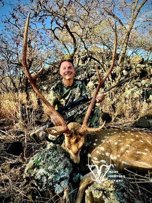 Accommodations, meals, 1x1 guide service, and trophy fees for up to one Axis Buck, two Axis Doe.
