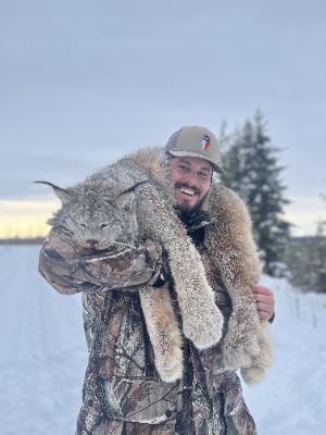 Hunt will take place using game calls and baiting in prime lynx habitat where these elusive predators roam pristine wilderness terrain.