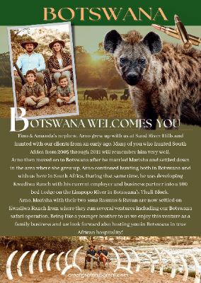 Established in 1998, Trophy Game Safaris is a family-owned, multi-generation company run by professional hunters Tino, Arno, and Ruan, who will guide you through over a million acres of prime hunting terrain.