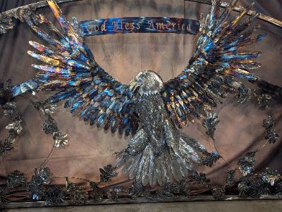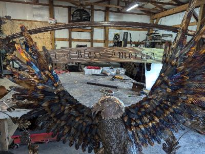 DAM Sculptures has generously donated a single Custom Steel hand formed Estate Entry Gate Depicting a Bald Eagle in natural patriotic form.