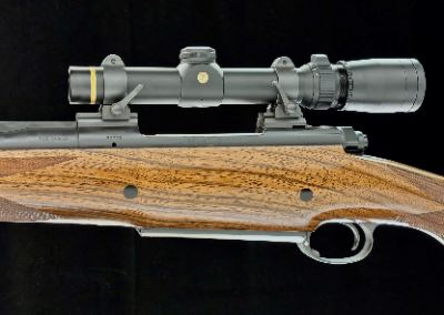 Featuring a Leupold Vari-X III scope, banded front sight, and island rear sight, it delivers precision and reliability in the field.