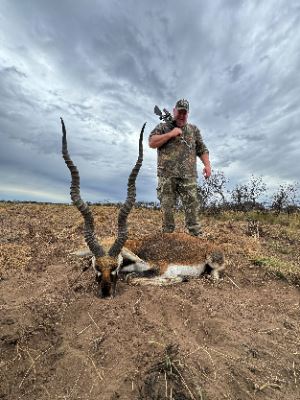 new hunting lodge accommodations, meals, wifi, one best available Red Stag, one best available Blackbuck, hunt meals, beverages, guide service, and field prep.