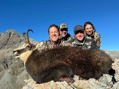 Your transportation is part of the thrill: comfortable side-by-side Can-Ams carry you across the lush Stag country, while helicopter access elevates your Tahr and Chamois hunt—literally—to the dramatic heights of the Alps.