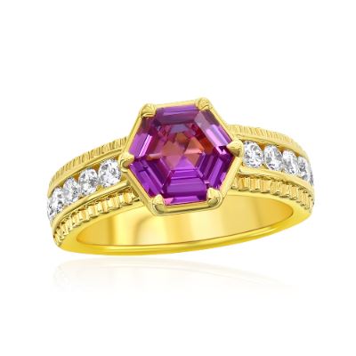 Lot 25FN Vivid Purple-Pink Sapphire and Diamond Ring in 18K Yellow Gold
