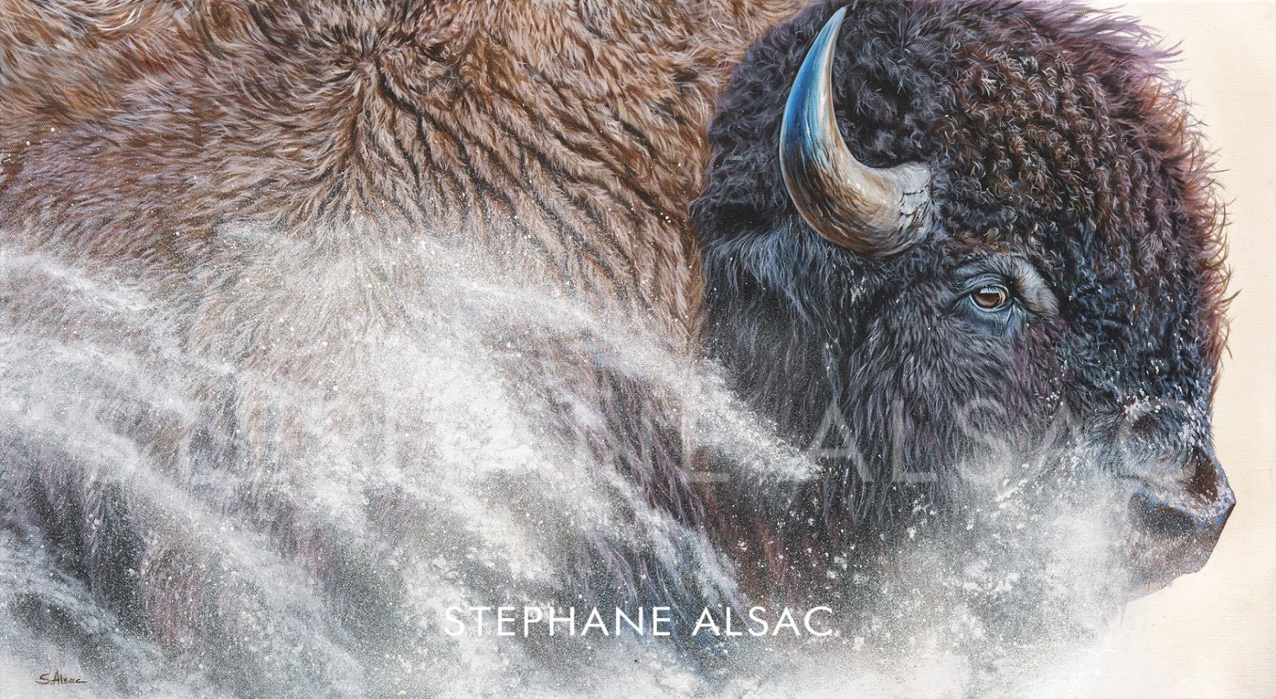 Alsac Fine Art proudly presents a stunning original oil on canvas titled "Snowpiercer" meticulously created by the internationally acclaimed wildlife artist Stephan Alsac.