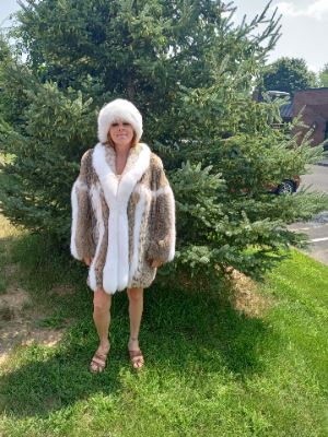 Lot 45SD Luxury Natural Lynx Fur Coat with Matching White Headband