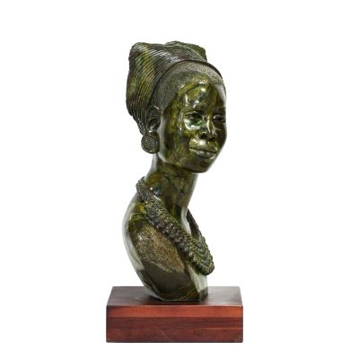 Lot 75SD “Zulu Traditional” Green Verdite Sculpture by James Tandi