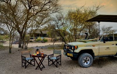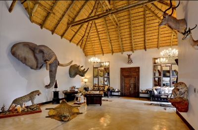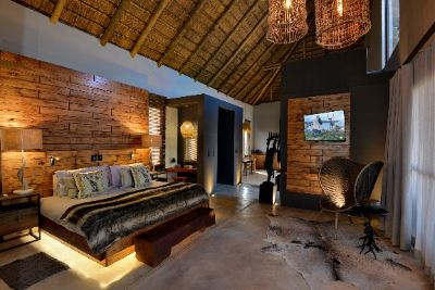 The Main Lodge overlooks a floodlit water hole for uninterrupted game viewing and photography.