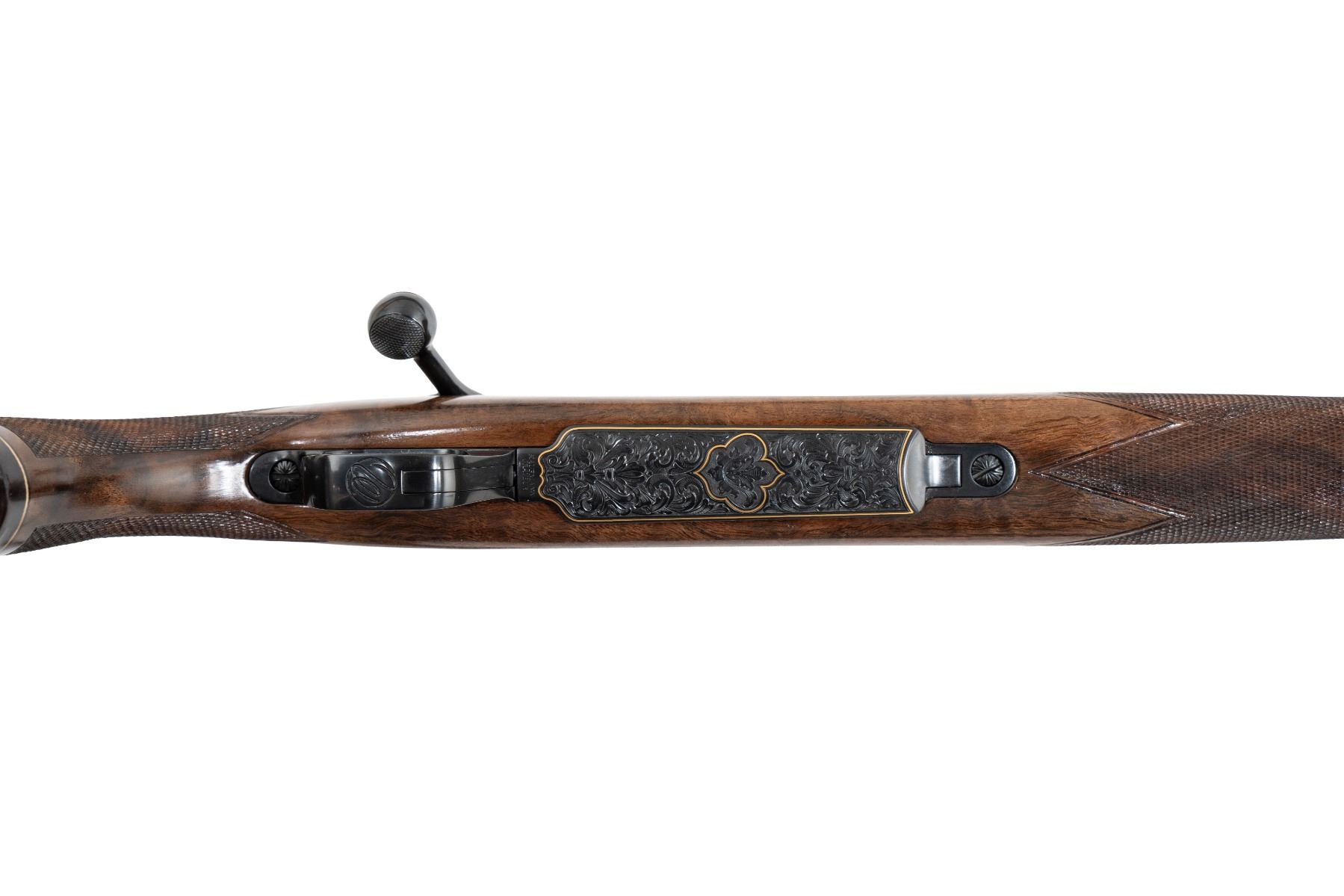 Every line carries his signature, from the jeweled bolt and follower to the 31 inches of 24-karat gold inlay that trace the rifle’s silhouette with quiet brilliance.