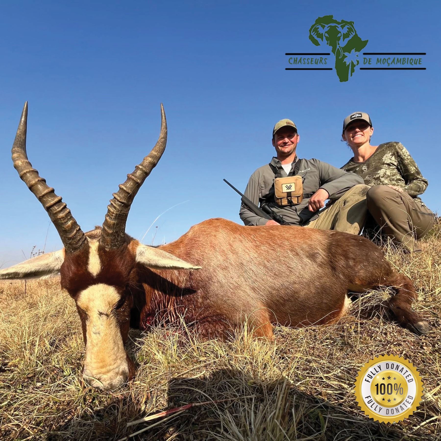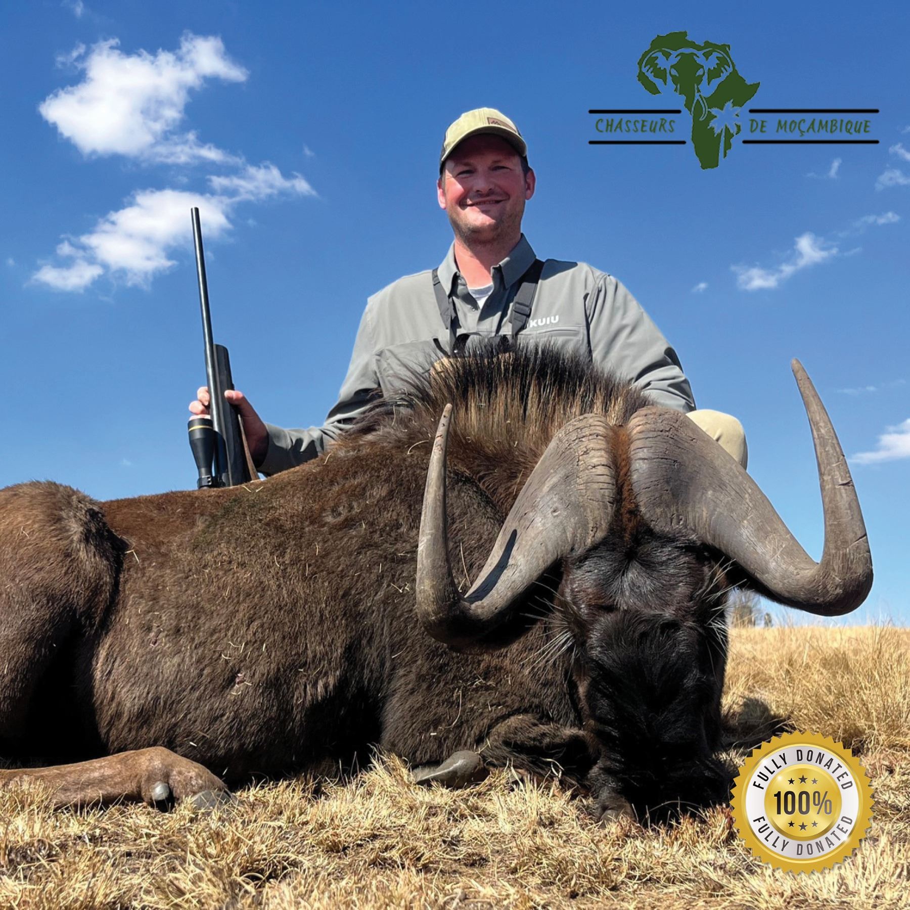 This is a 3-day black wildebeest and blesbuck hunt for 1 hunter in South Africa with Chasseurs de Mocambique.