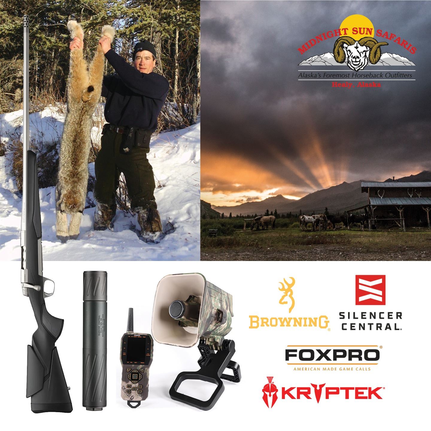 This hunt will also include a Browning XB2 Stainless 6.8 WST rifle, FoxPro, Silencer Central Banish 30-V2 certificate, and Kryptek clothing