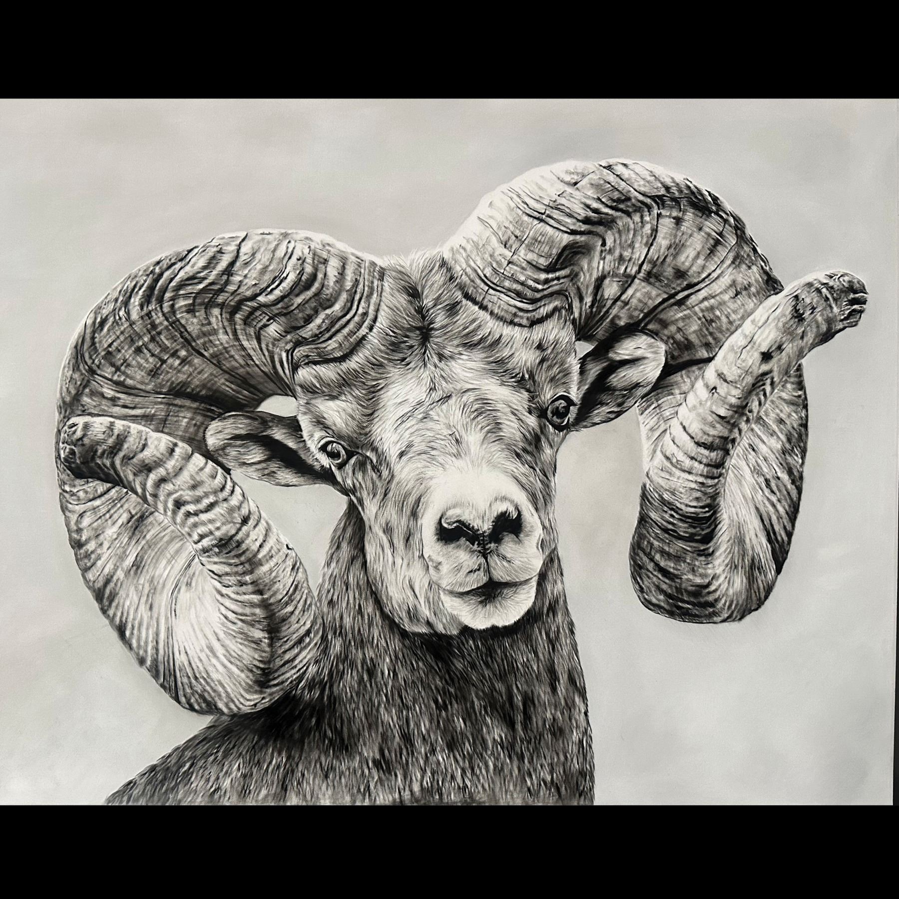 Lot 25 FRAMED ORIGINAL CHARCOAL POWDER DRAWING “THE RAM” - 30X40