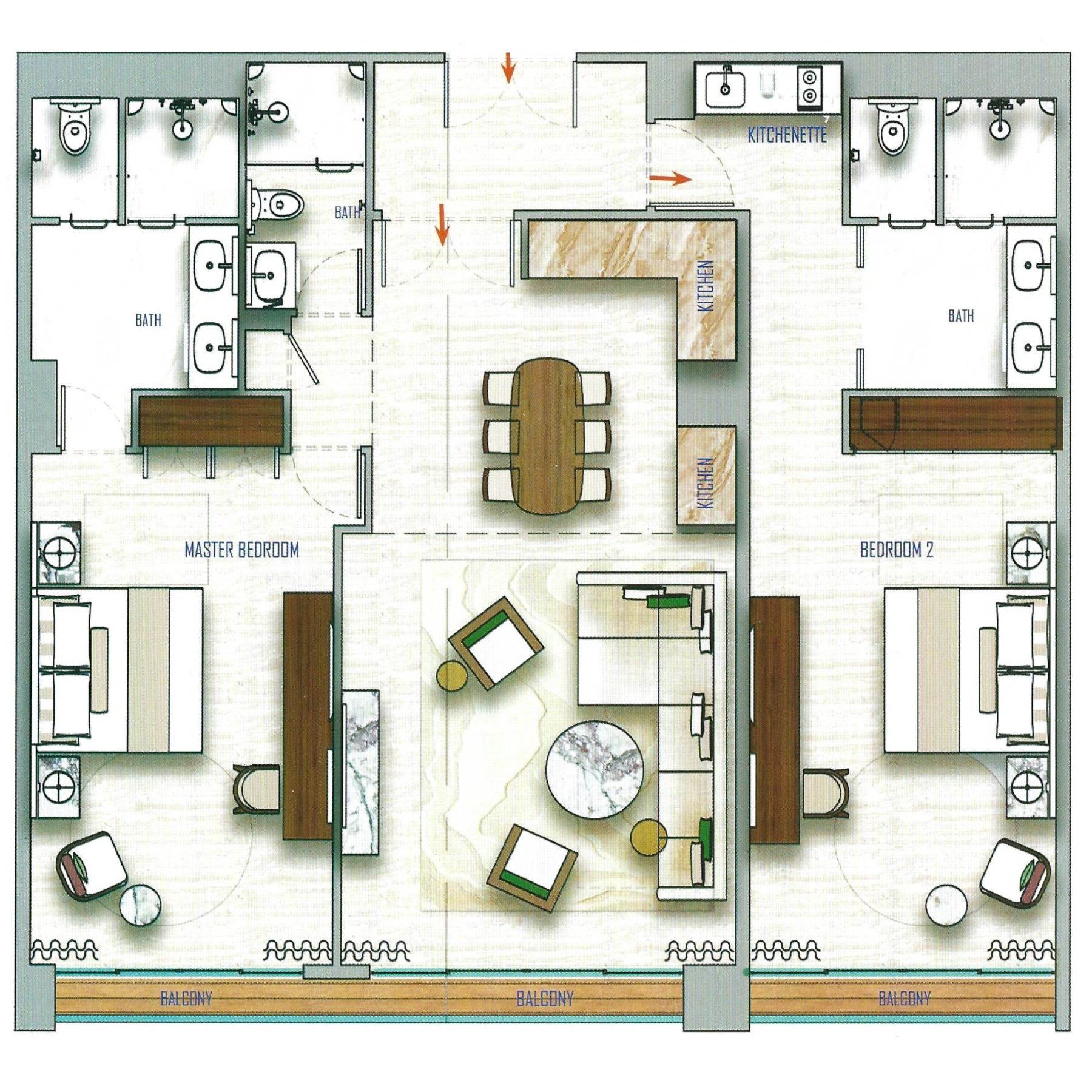 Accommodations in a newly opened 2-bedroom Legacy Master Suite.