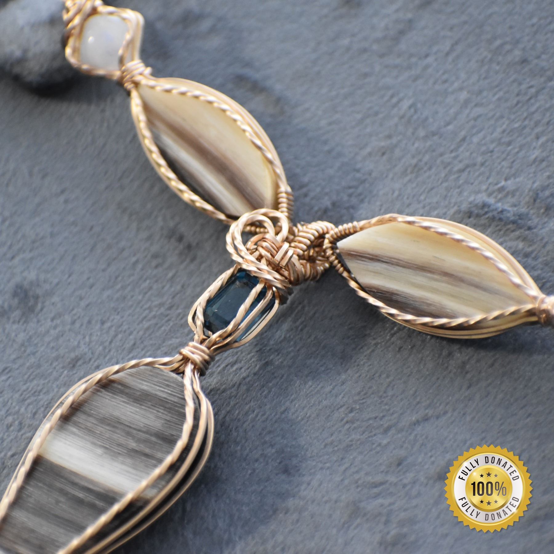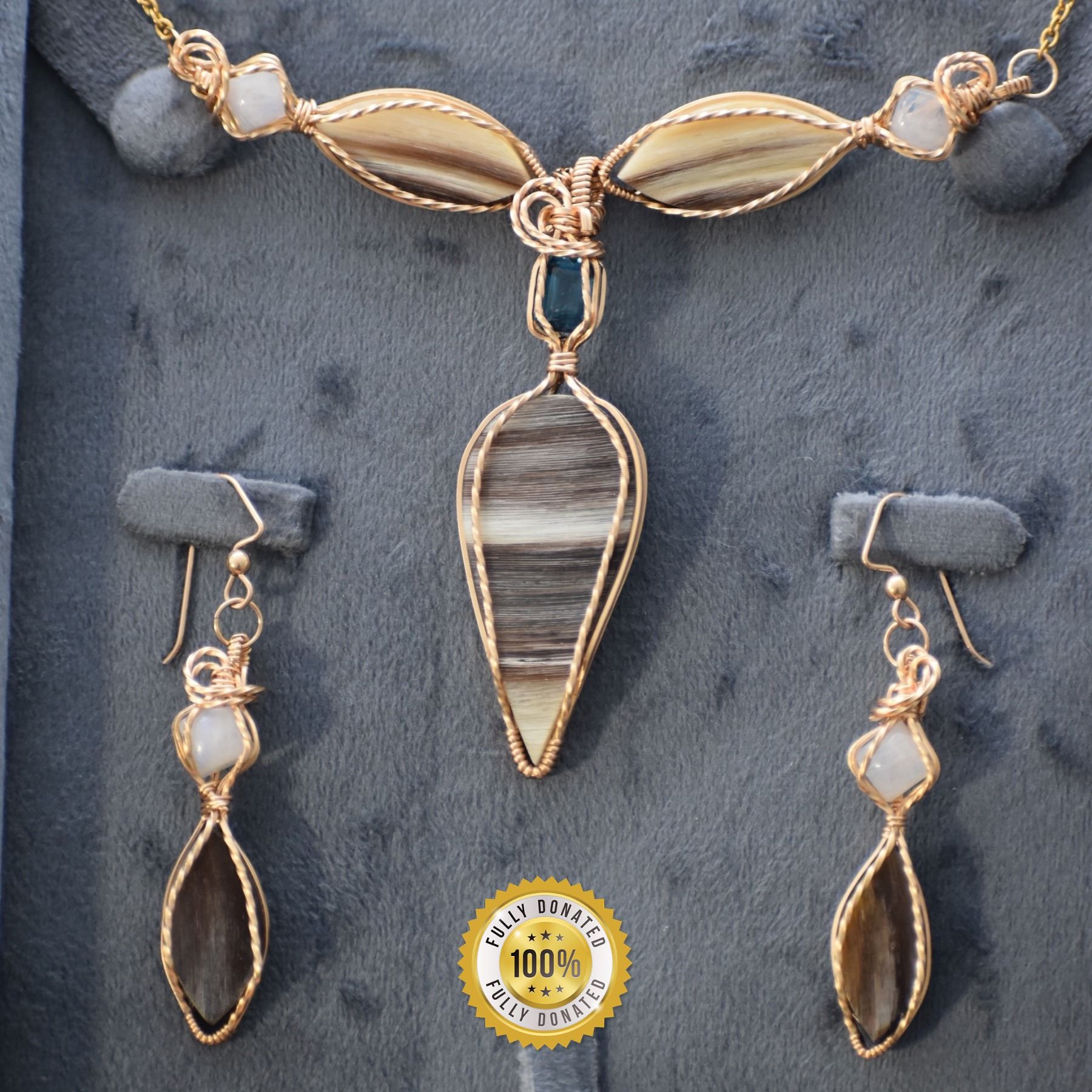 Lot 5 CUSTOM DESIGNED WILD SHEEP HORN W/LONDON BLUE TOPAZ AND RAINBOW MOONSTONE JEWELRY SET