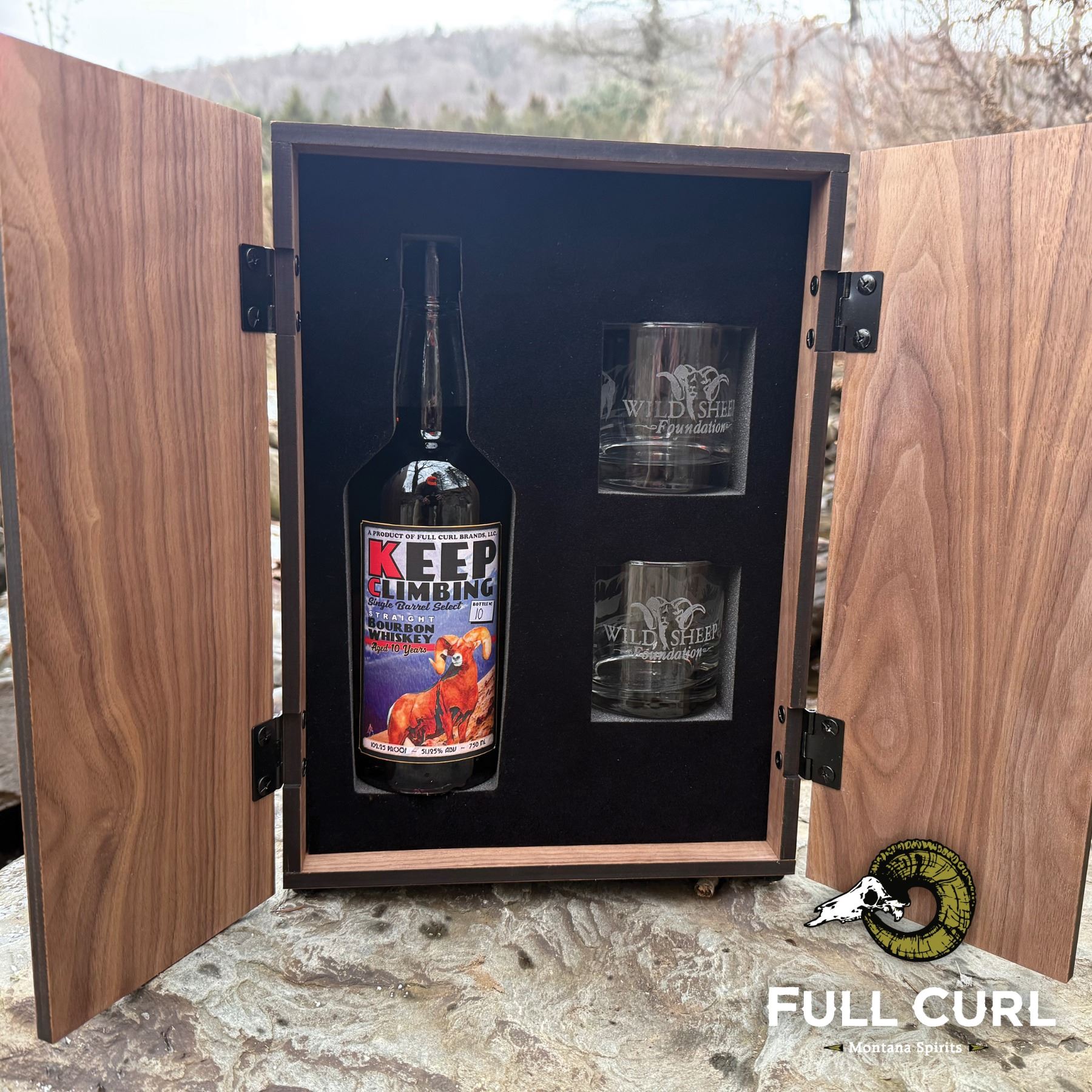 You are bidding on our limited boxed edition “Keep Climbing Straight Bourbon Whiskey & Walnut Wooden Box Set”.
