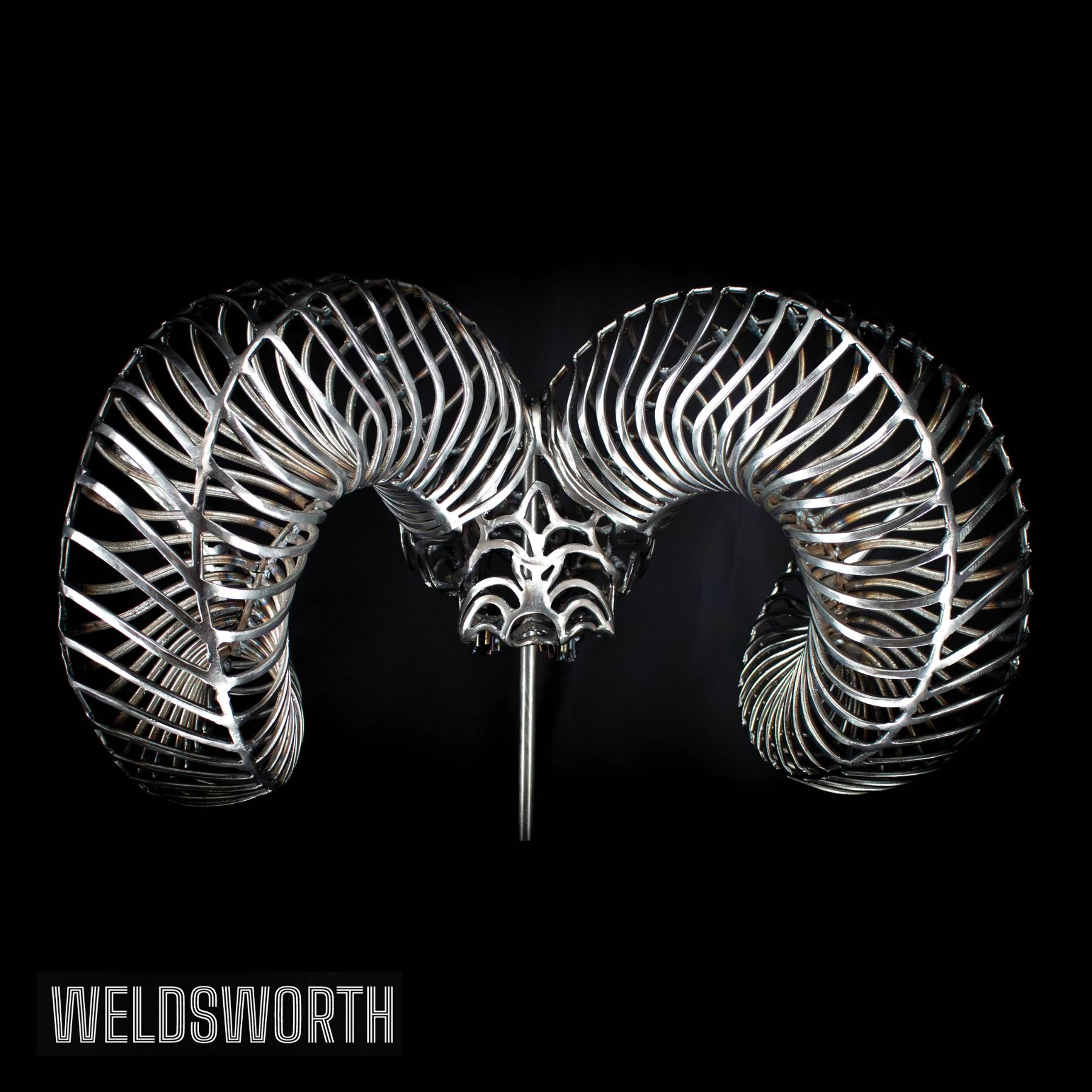 Each piece is shaped, welded, and finished by hand, giving it a bold three-dimensional form with dynamic shadows that change with the light.
