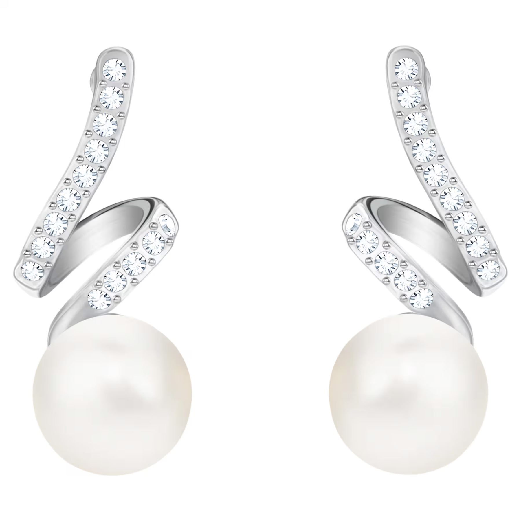 Infuse any outfit with sophisticated sparkle with this stunning pair of rhodium-plated pierced earrings. Full of luxurious lustre, they would make an ideal gift. The beautifully balanced design showcases Swarovski's renowned craftsmanship with shimmering Crystal Pearls swathed with delicate pavé spirals. A matching pendant is available.