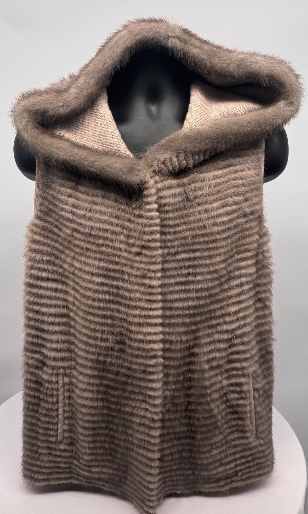Lot 209 HOLLOWAY FURS: Ladies Knit Hooded Vest with Mink Stripes