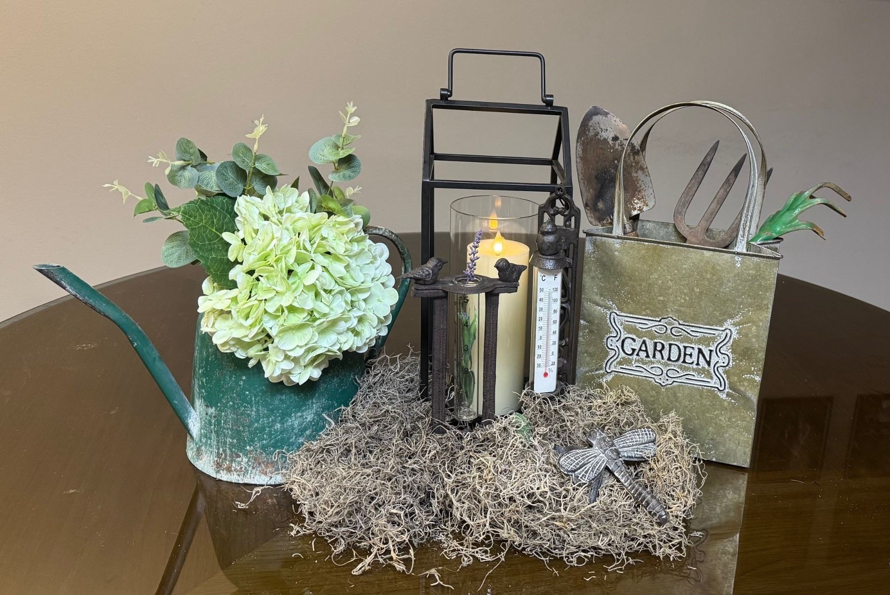 Whether you're a seasoned gardener or hopeful beginner, "Garden Party" decor package will add a touch of whimsy to your backyard sanctuary. Package includes a large Devon lantern with candle, antique watering can, large metal 'Garden' tote, caste iron bird rain gauge, wall mounted bird thermometer, 3x antique garden hand tools and a whimsical, handcrafted dragonfly. DALLAS SAFARI CLUB THANKS FRIEND OF DSC FOR THIS 100% DONATION. Christie Selle, christie@biggame.org.