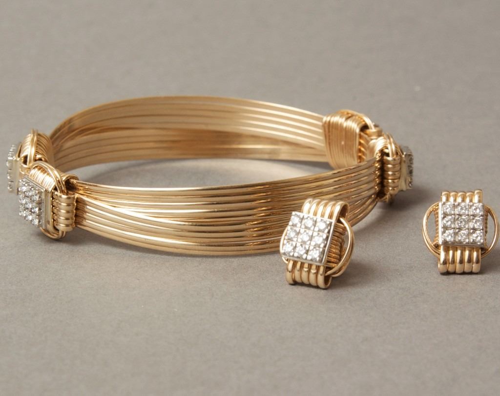 Lot 236 AFRICAN ELEPHANT-SAFARI JEWELRY: 14K Gold Fill Bracelet with CZs and Matching Studs