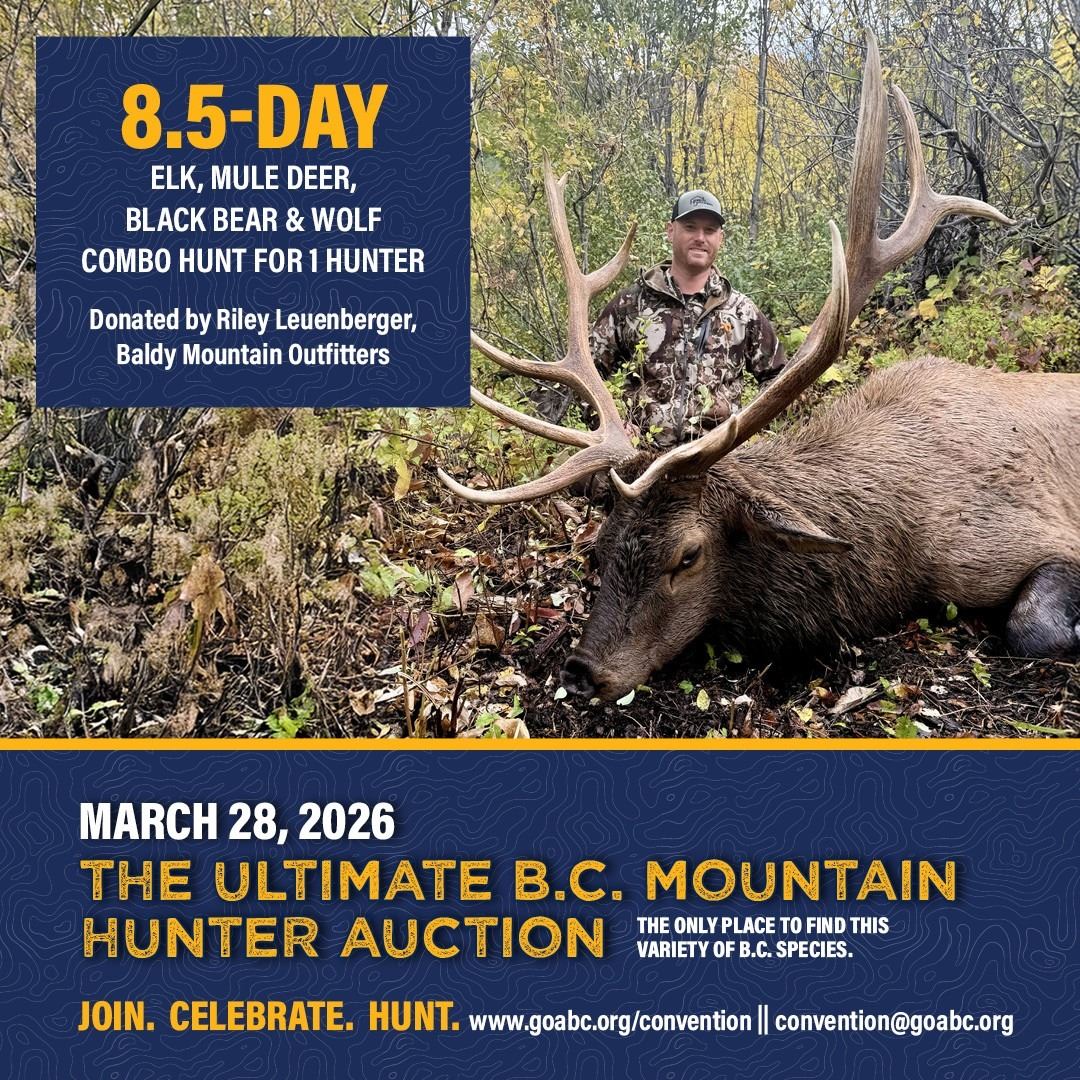 Item not covered by this donation is the hotel stay before and after the hunt in Fernie.