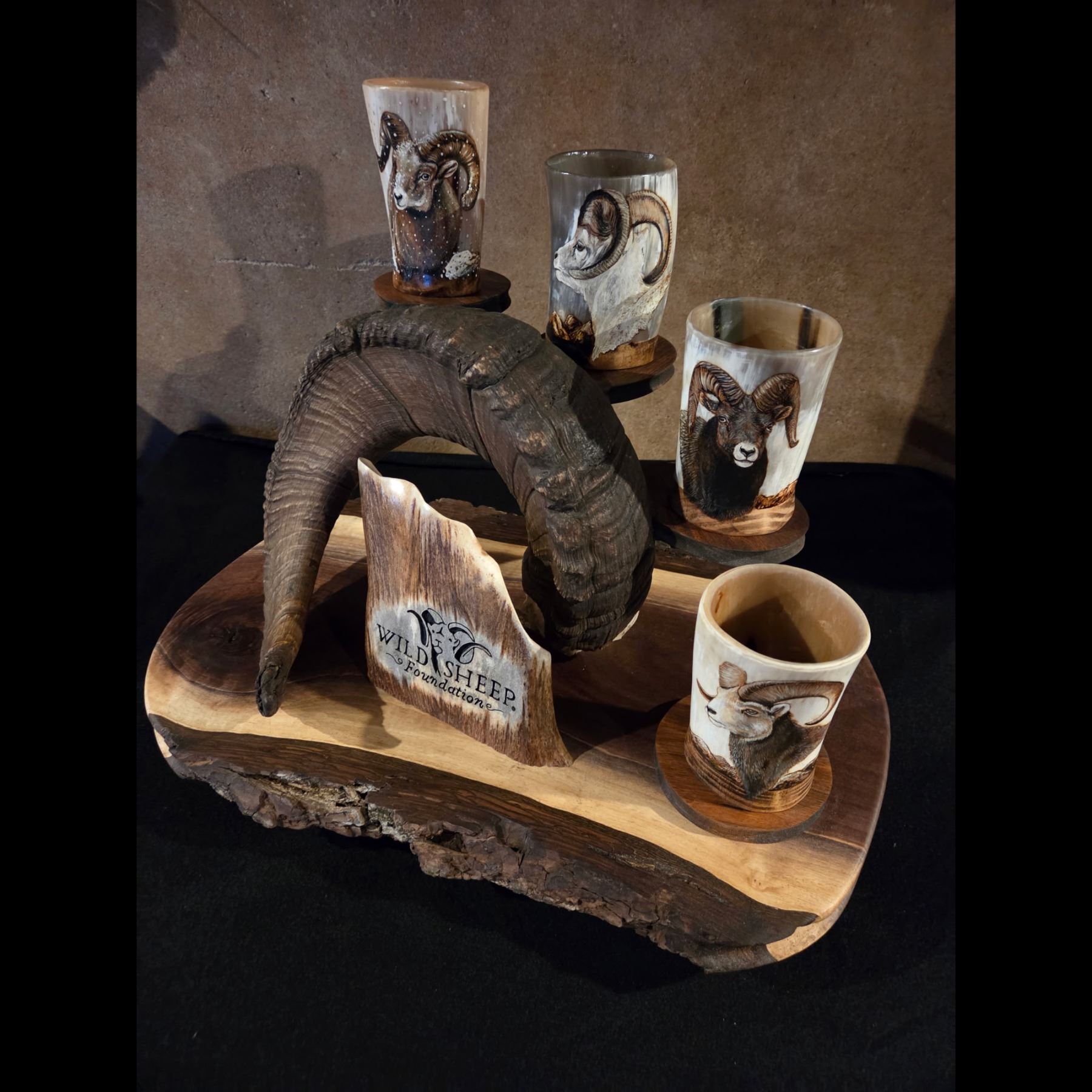 Hand crafted custom horn mugs created from Texas longhorn horns, deer antlers, various horn handles, and wood.