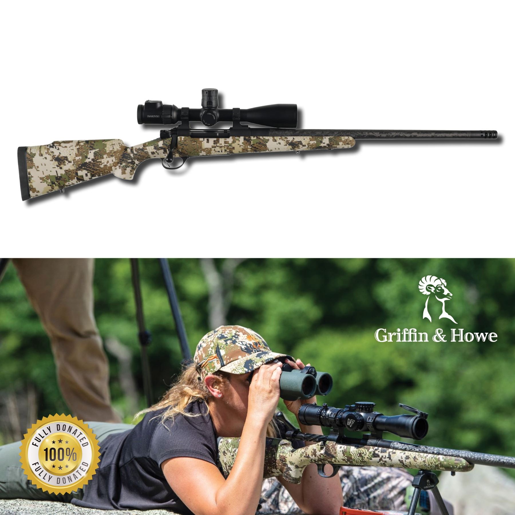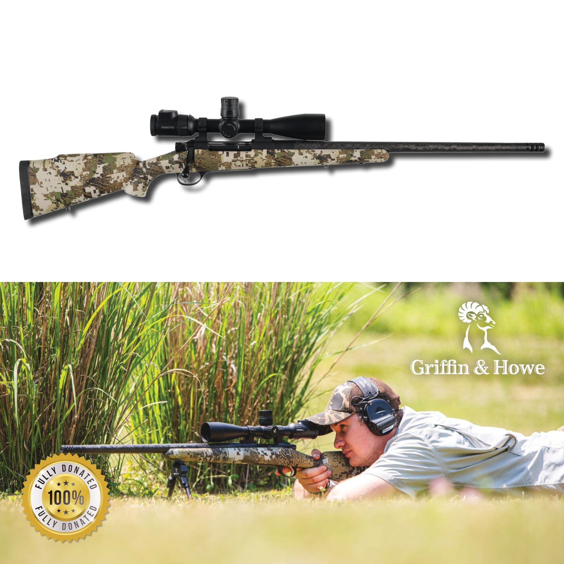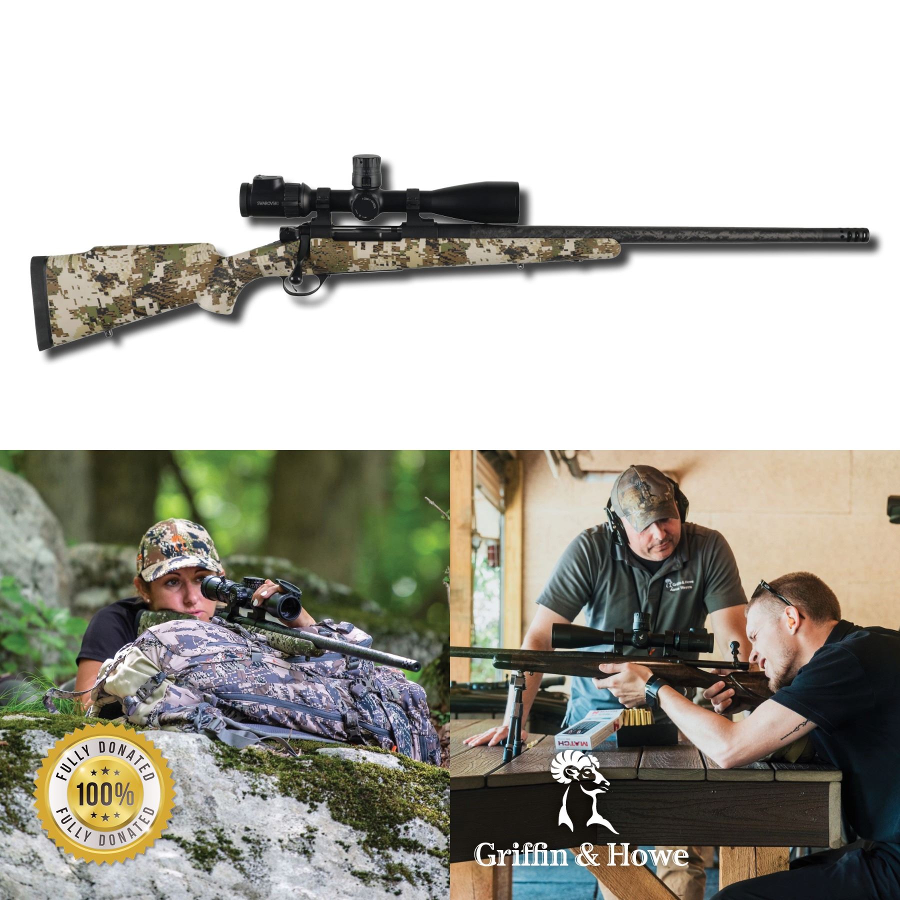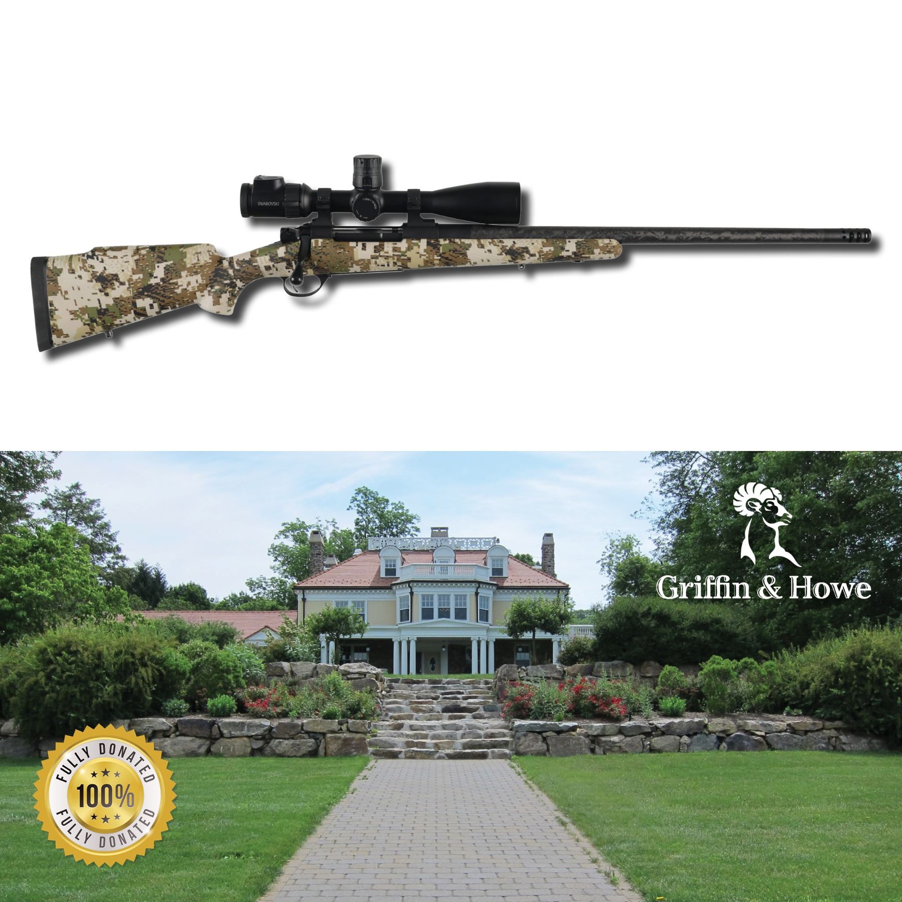 Lot 35 GRIFFIN & HOWE HIGHLANDER LITE RIFLE PACKAGE W/SWAROVSKI SCOPE AND HUDSON FARM STAY