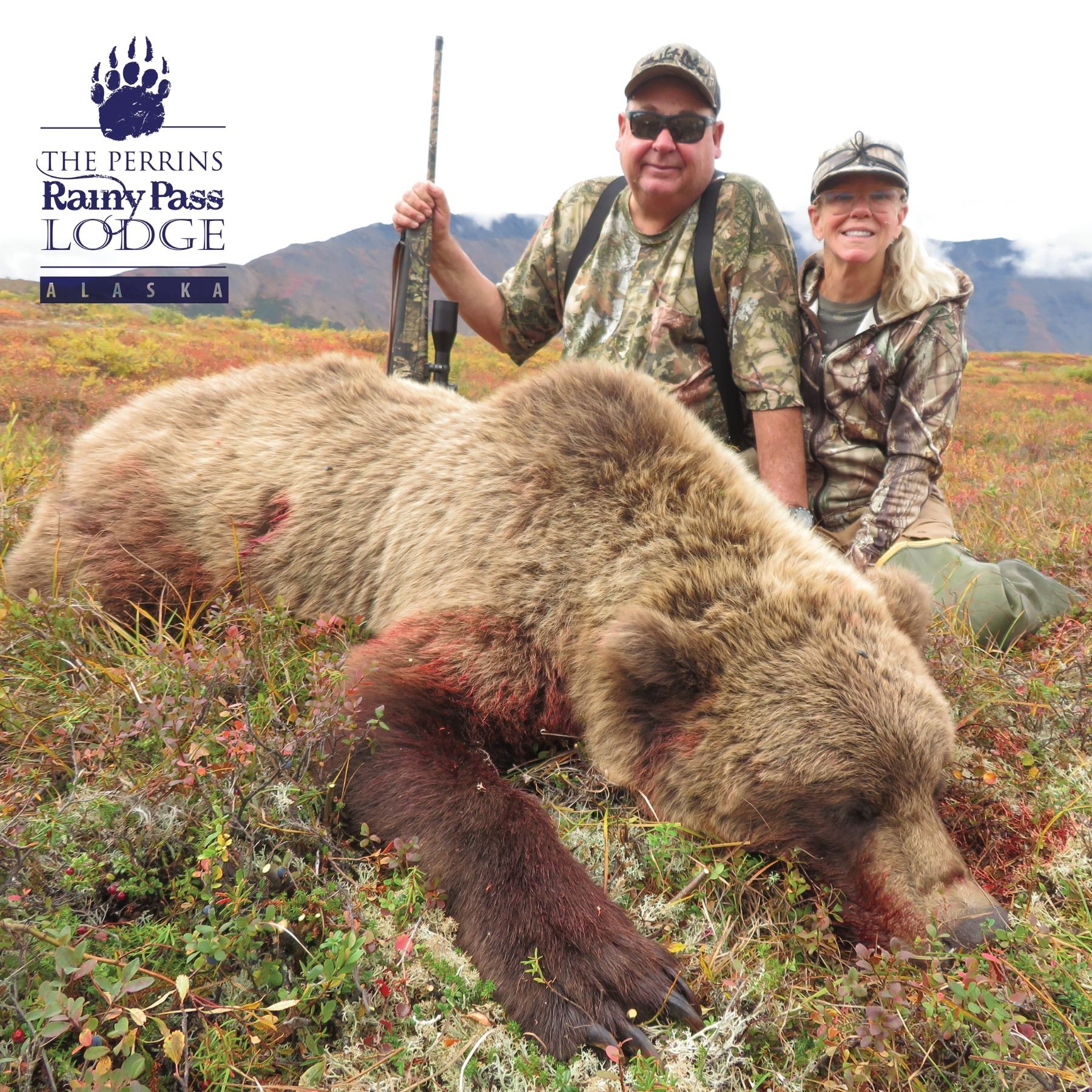 You will hunt 1 brown/grizzly bear and 2 black bears (shared between 2 hunters) with The Perrins Rainy Pass Lodge.