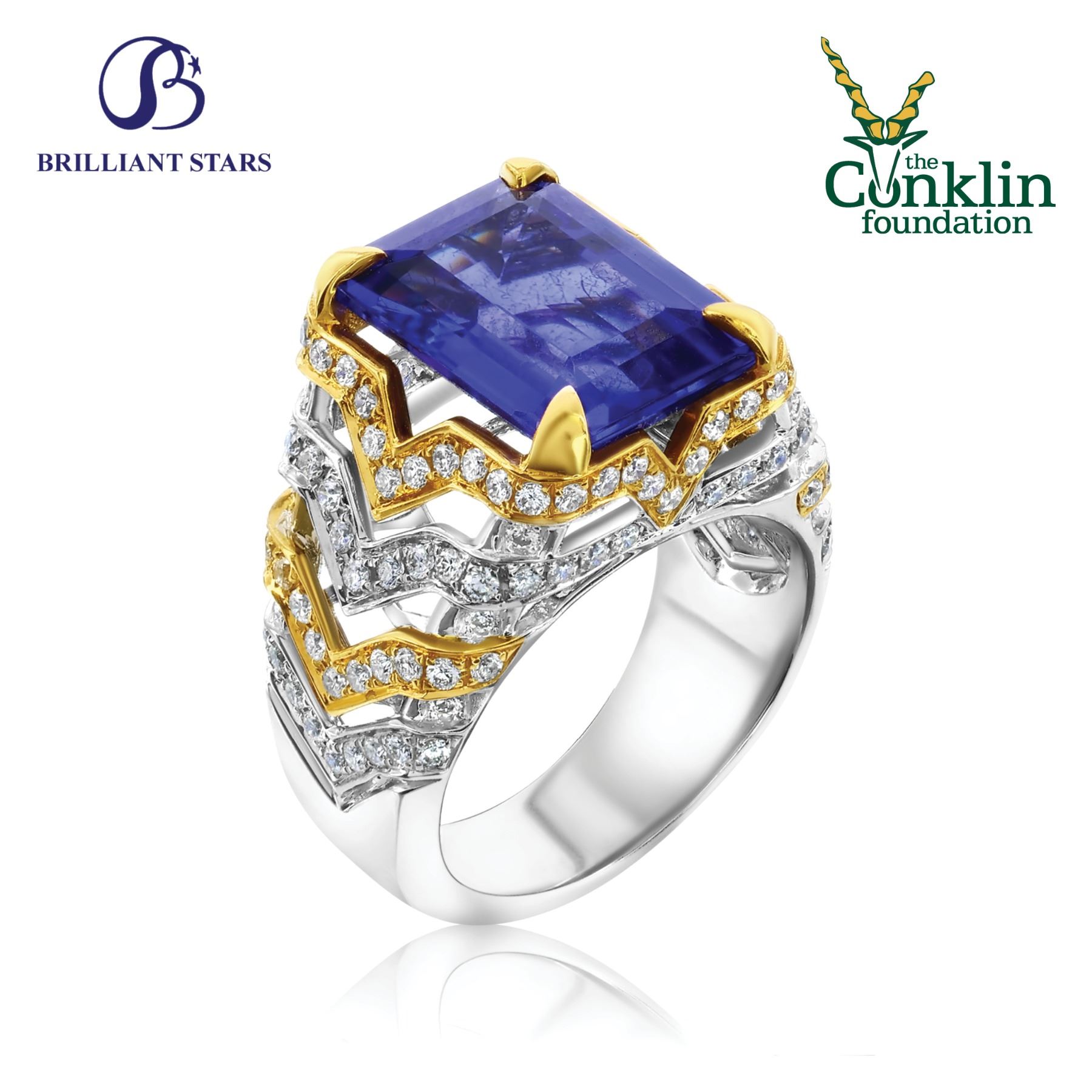 Brilliant Stars has generously donated a magnificent 18k yellow and white gold ladies ring which holds a stunning 8.35 carat Tanzanite and is adorned with 1.14 carats of the finest diamonds.
