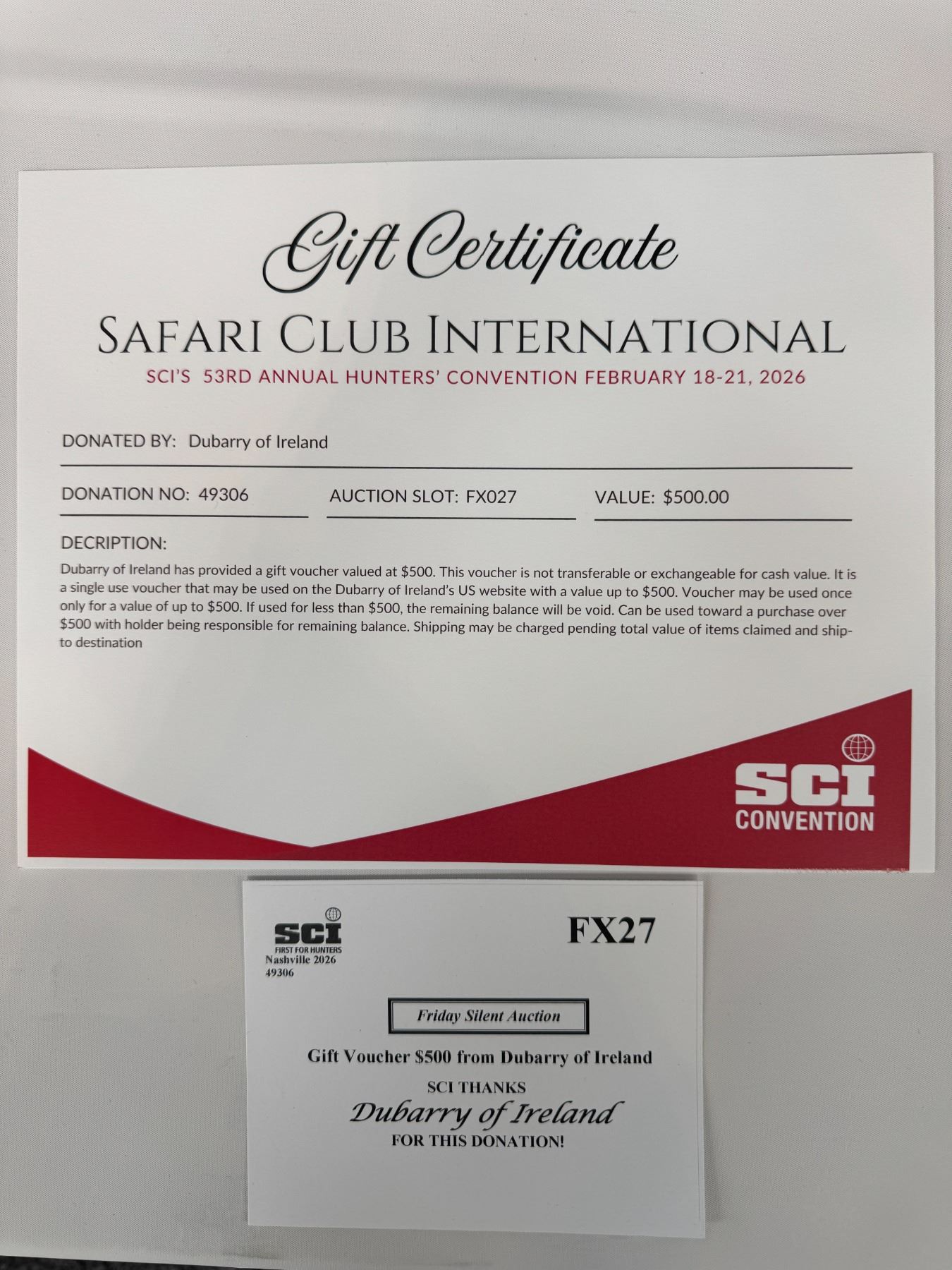 Lot 27FX Gift Voucher $500 from Dubarry of Ireland