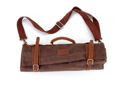 The set is secured in a durable waxed canvas and leather roll bag designed for easy transport and long-term use.