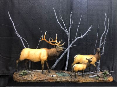 Karl Lansing Studio-Wilderness Images has donated an original bronze sculpture titled “Among the Deadwood" which is a realistic, limited edition, bronze sculpture of an elk family.