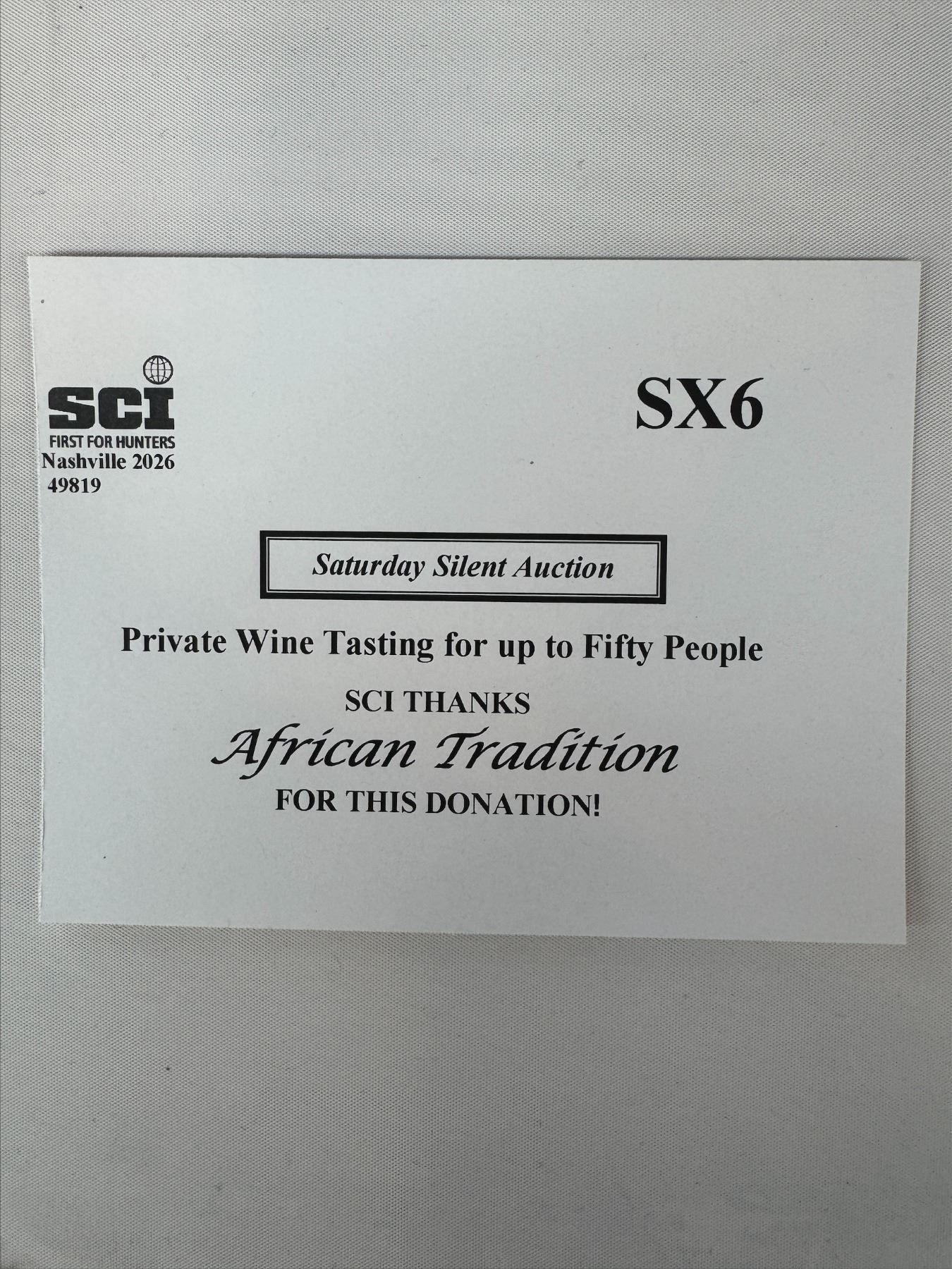 African Tradition has donated a Private Wine Tasting for up to Fifty People to be held in the comfort of your own home.