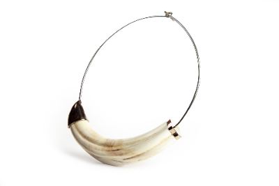 Fashioned from authentic warthog tusk and accented with sterling silver fittings, the design balances organic strength with minimalist sophistication.