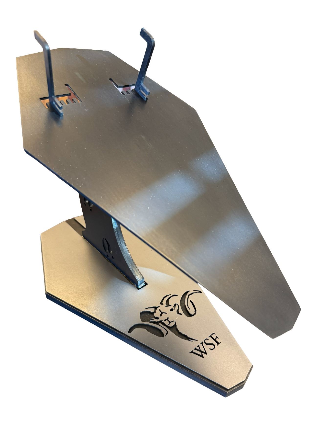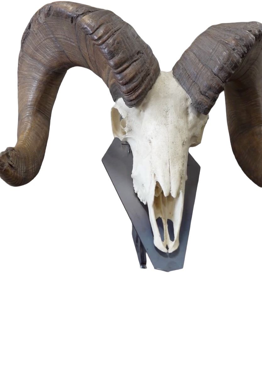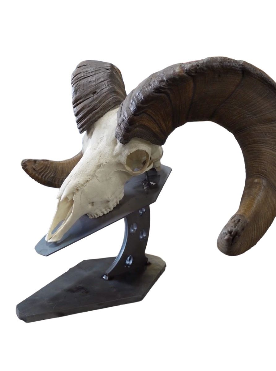 Description: (100% Fully Donated) Show off your euro trophy in style with this welded steel display. Will work with nearly all Mule Deer, Wild Sheep, Antelope, or other medium sized euro mounted skulls.