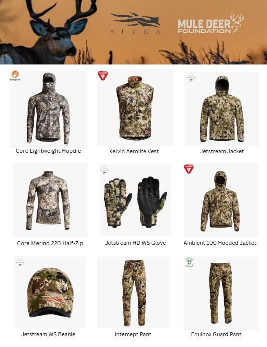 Payment may be made by credit card (3% fee); checks over $10,000 must be received within 10 days. Winners are responsible for shipping or pickup, and restricted items must comply with all applicable laws. Participation constitutes acceptance of the Mule Deer Foundation Auction Terms & Conditions. All items are sold “as-is” with no warranties.
