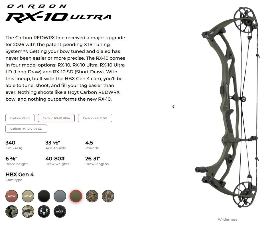 Whether you’re pursuing Mule Deer, elk, or other big game, the Hoyt RX-10 Ultra Bow offers professional-level performance in a sleek, modern package. A must-have for the avid archer seeking precision, reliability, and power in a bow that sets the standard for 2026.