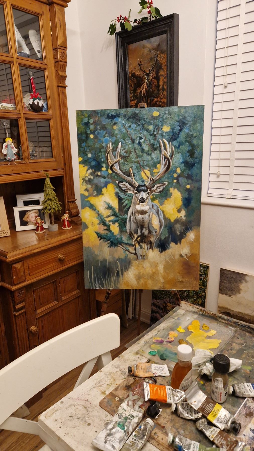 This striking original oil painting by K. Alderson-Smith captures a mule deer bathed in the warmth of the morning sun, evoking the quiet beauty of the Western landscape. Rich tones and careful detail bring the animal to life, highlighting both the strength and elegance of one of the West’s most iconic species.