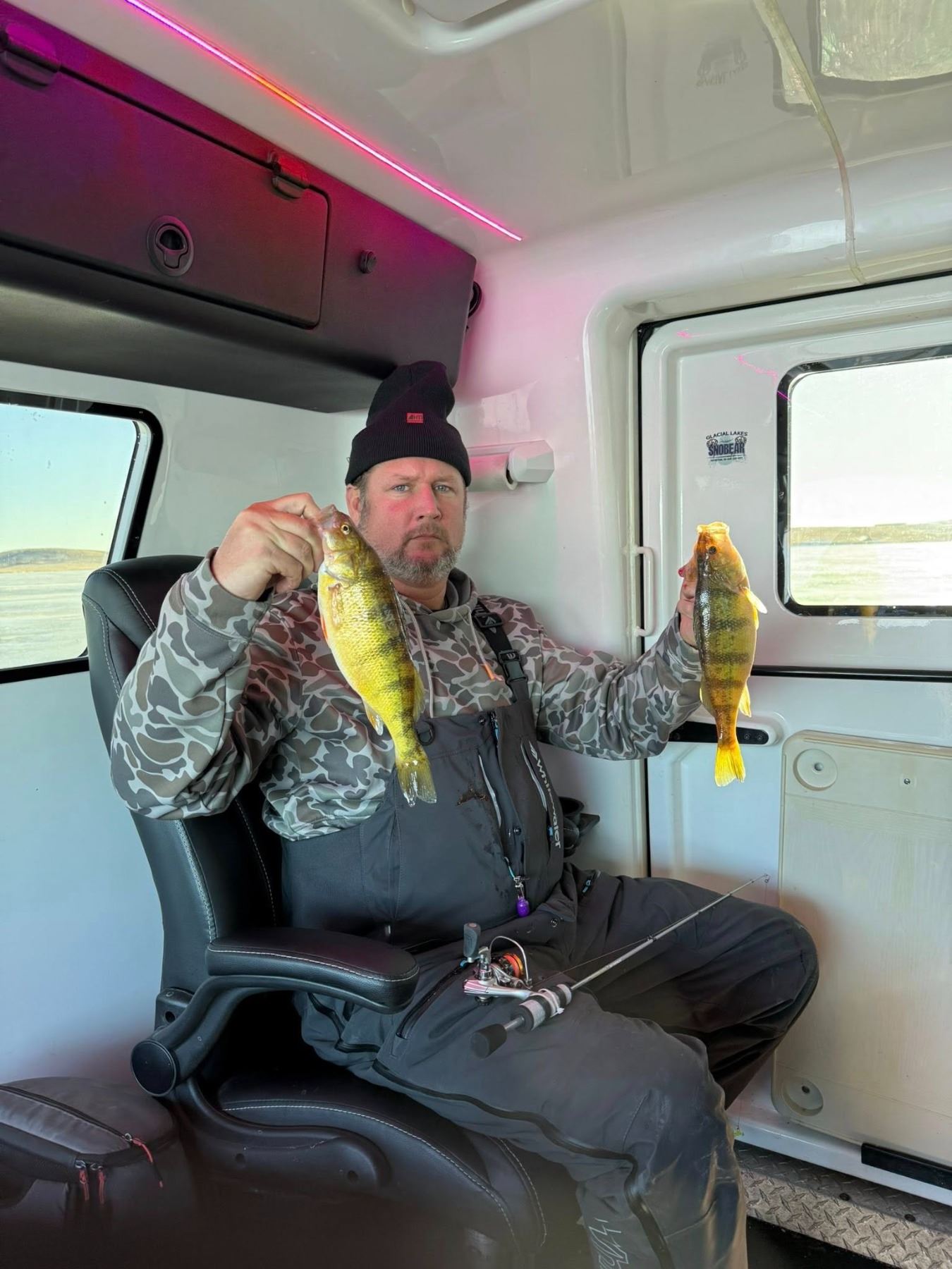 All trips are operated out of a fully heated Snobear and focus exclusively on walleye and perch within a 1.5-hour radius of Bismarck/Mandan.