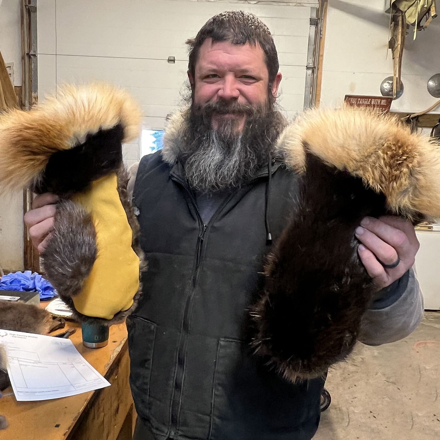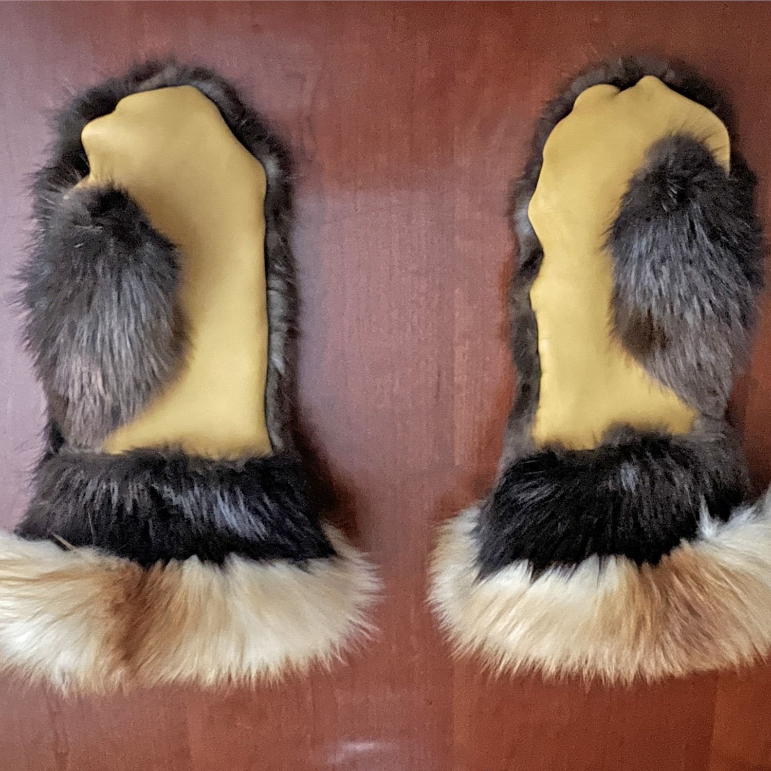 Description: (100% Fully Donated) Canadian hand Made Beaver Belt Mittens. Experience unmatched warmth and elegance with these premium winter mitts, handmade in southern Alberta by Rod Graham. The exterior is crafted from genuine beaver pelt, the cuffs are from Red fox fur with soft deer hide on the palms for durability and grip. Inside, a luxurious lamb shearling lining ensures maximum comfort and insulation. These are, without question, among the warmest and most beautiful winter mitts available.