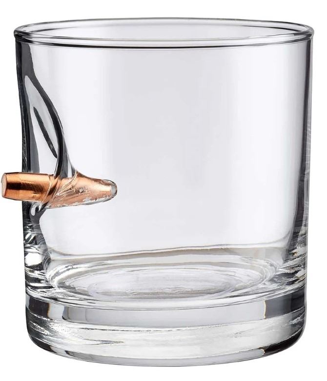 This 11oz whiskey glass is hand-embedded with a real, lead-free, solid copper .308 bullet.