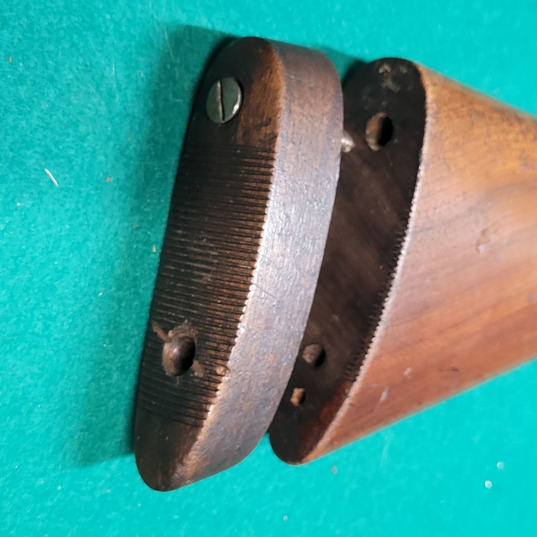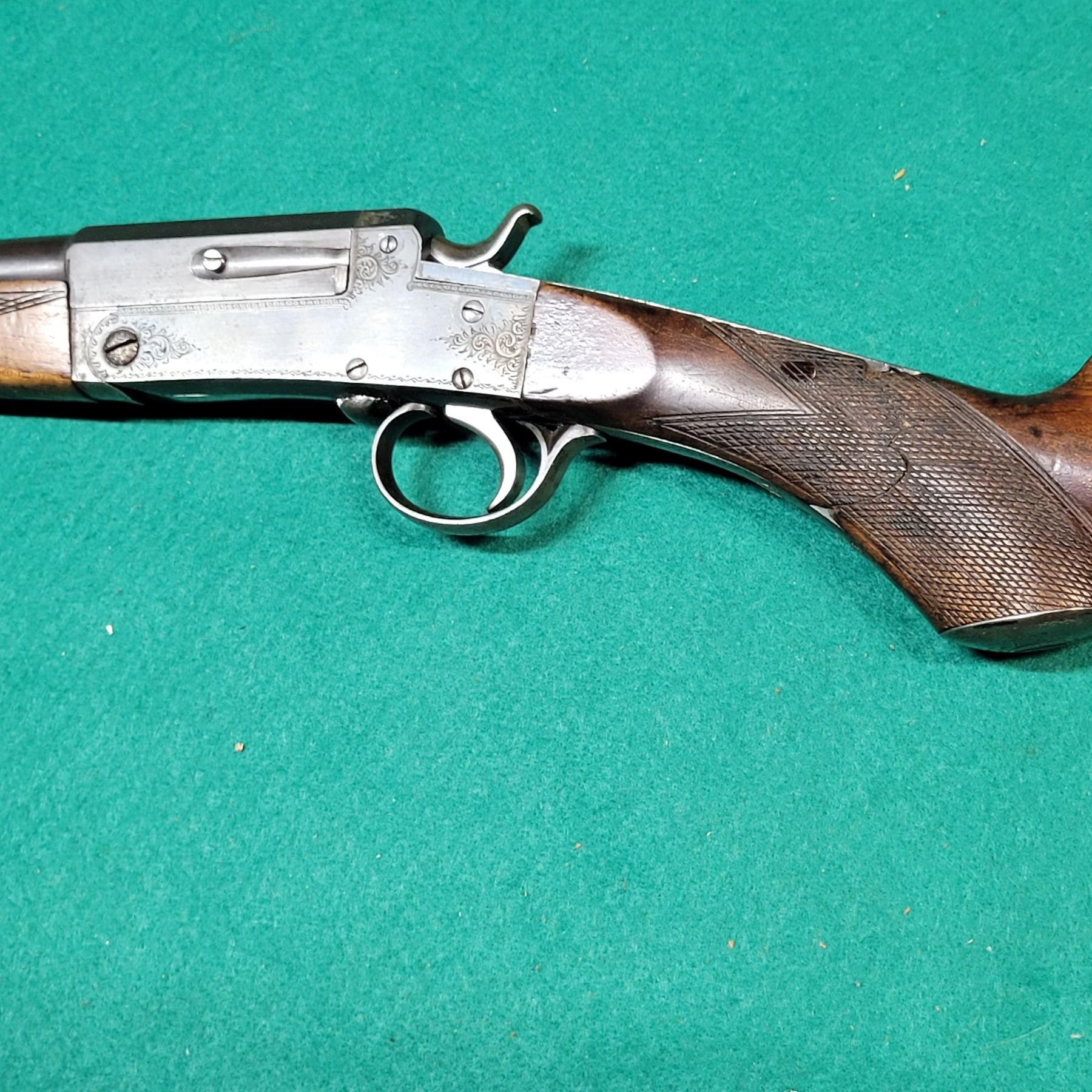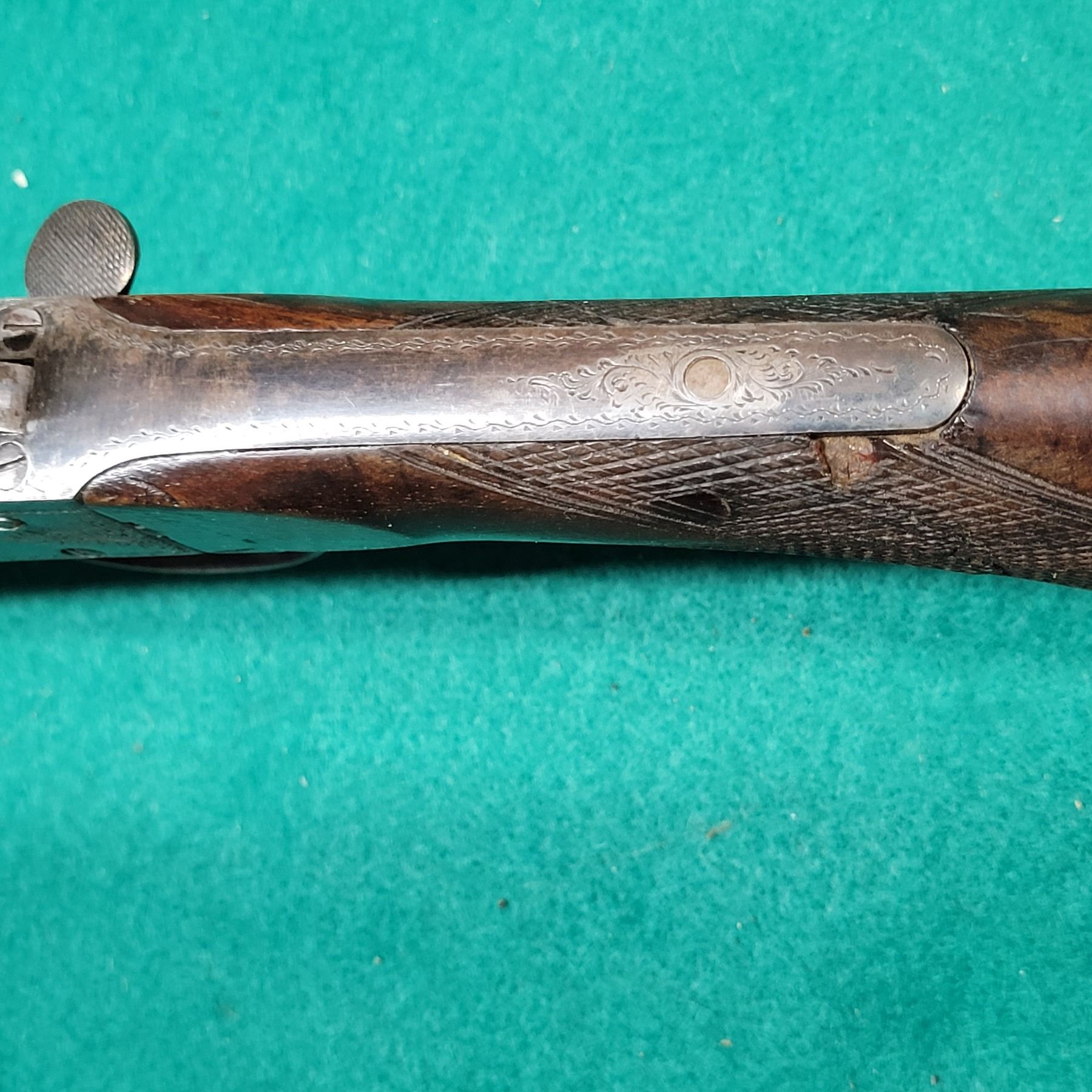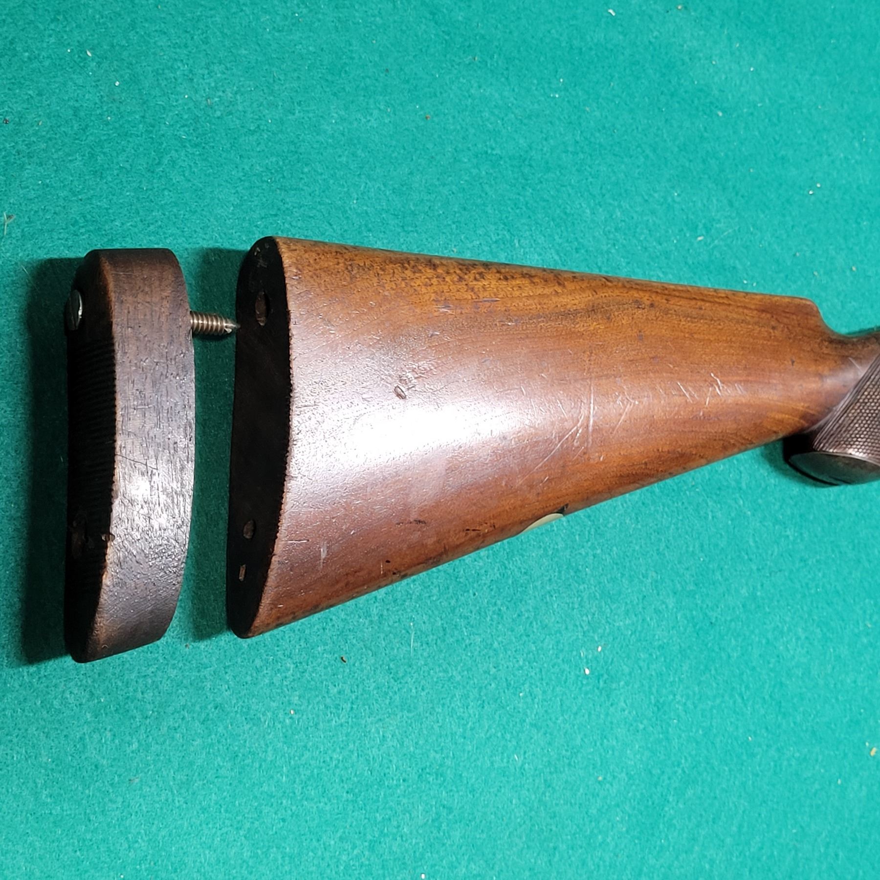 The walnut checkered stock has a repaired break at the wrist. See Photos.