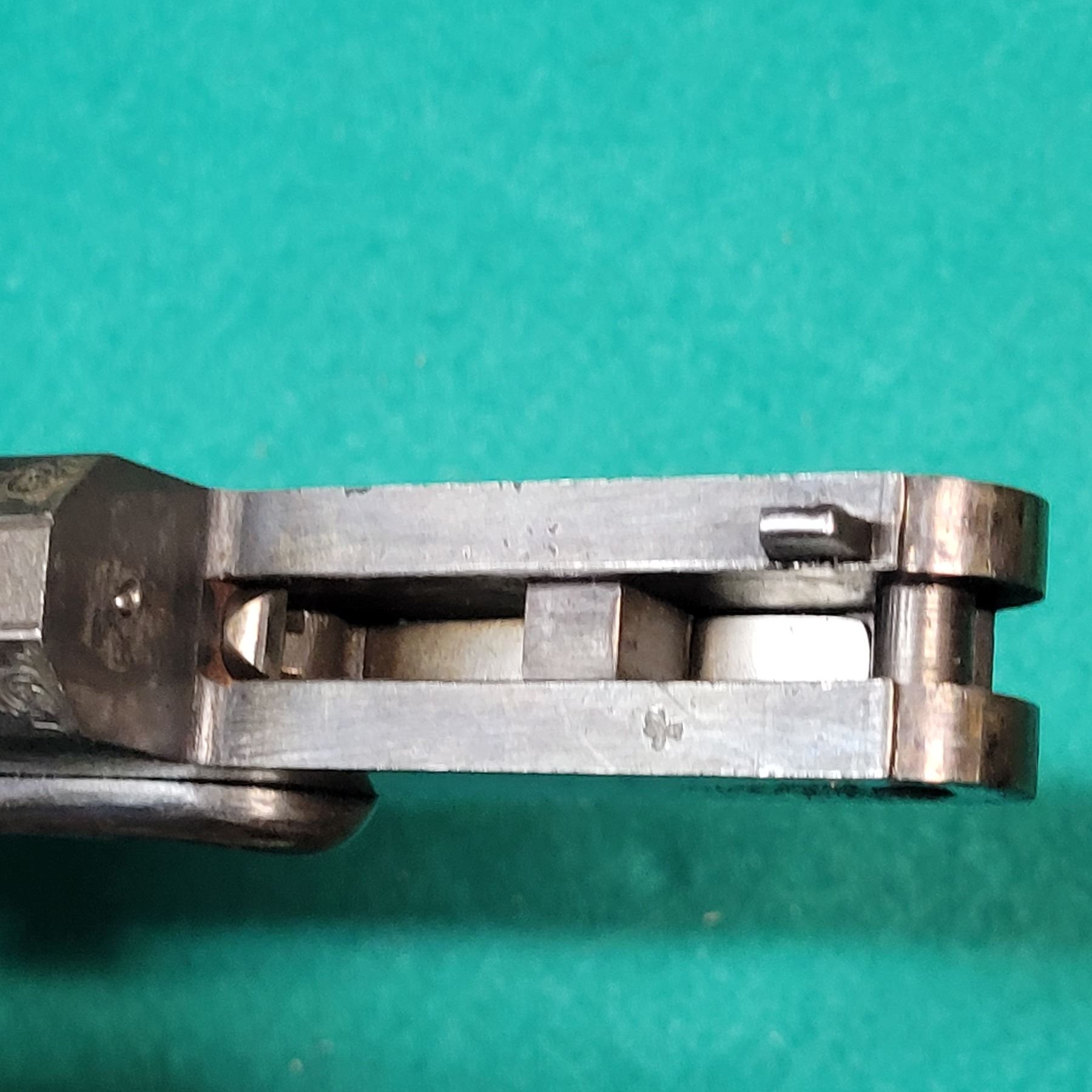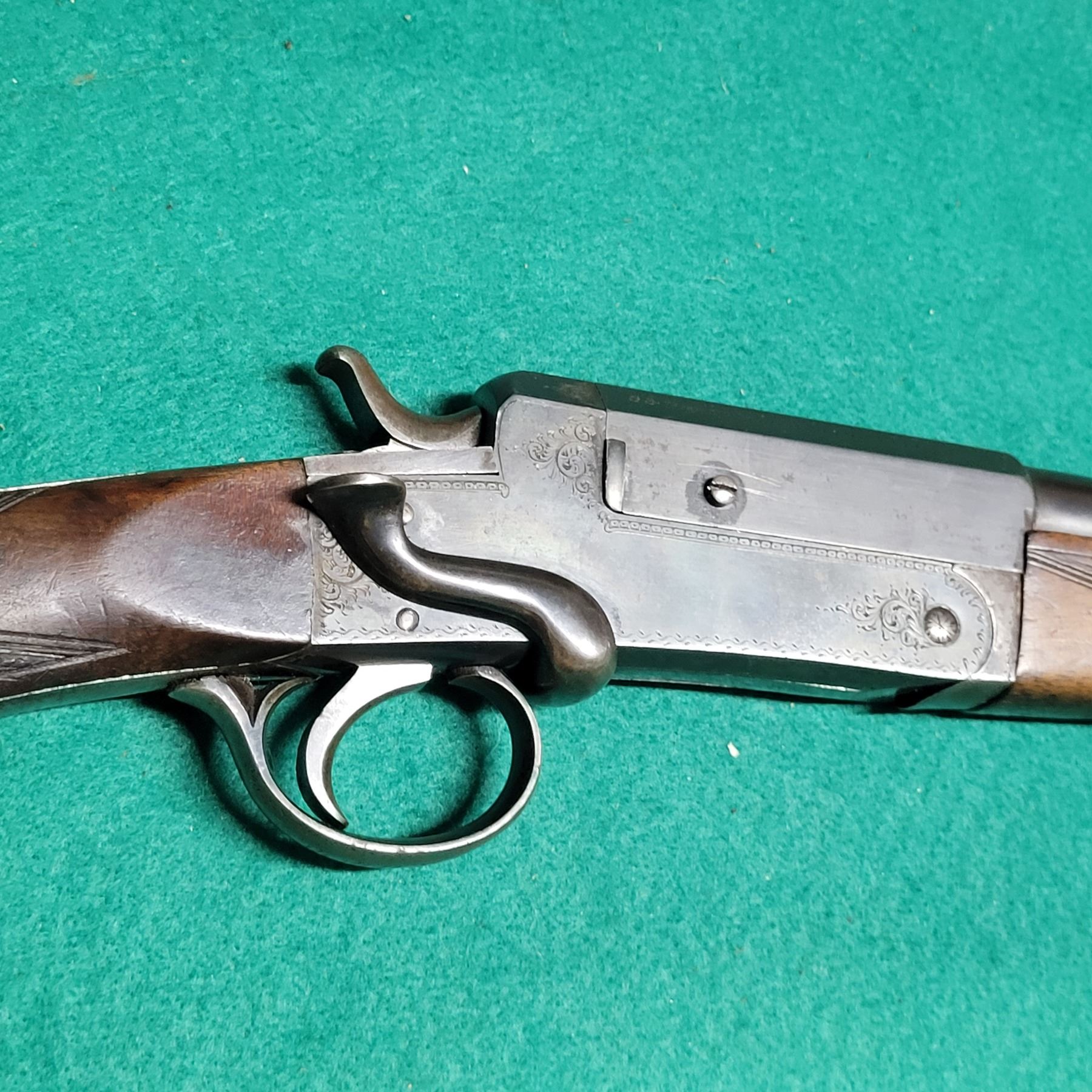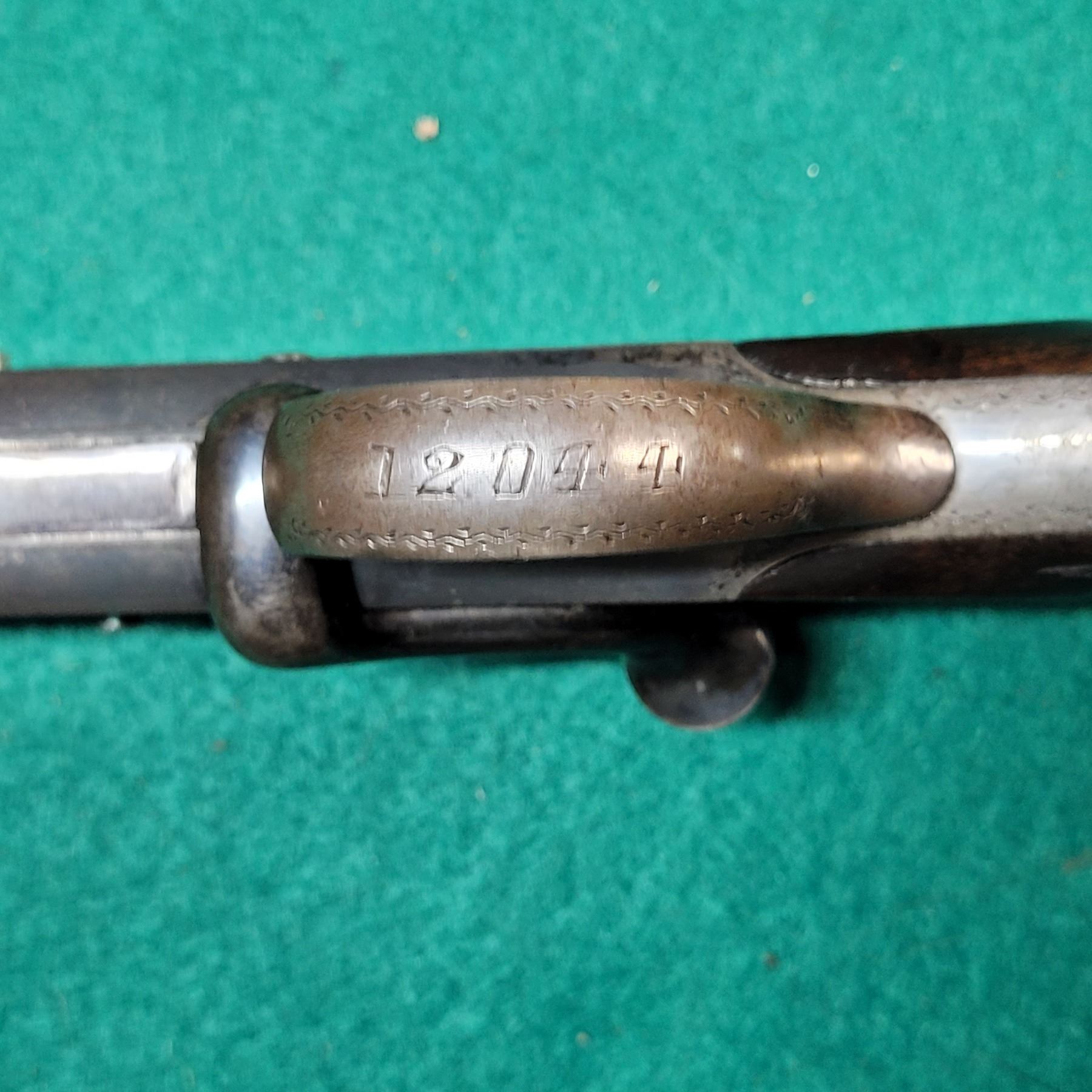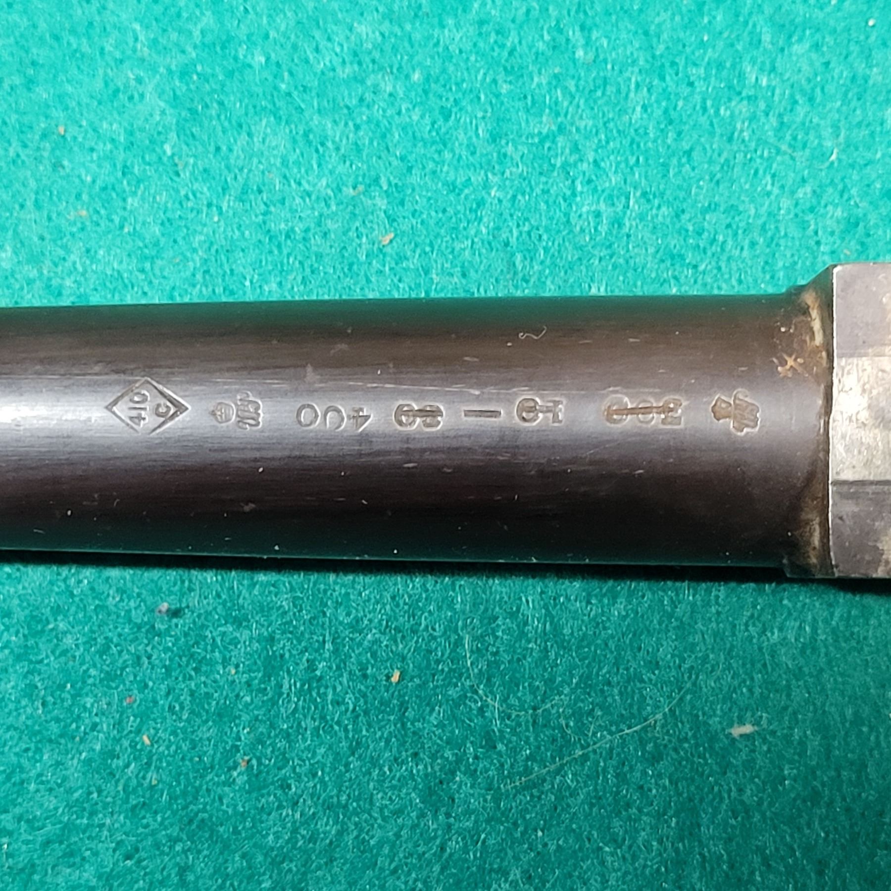 The 26 1/2" Barrel retains most of its blueing and the bore has pitting about a quarter of the length in front of the chamber. Still shootable.