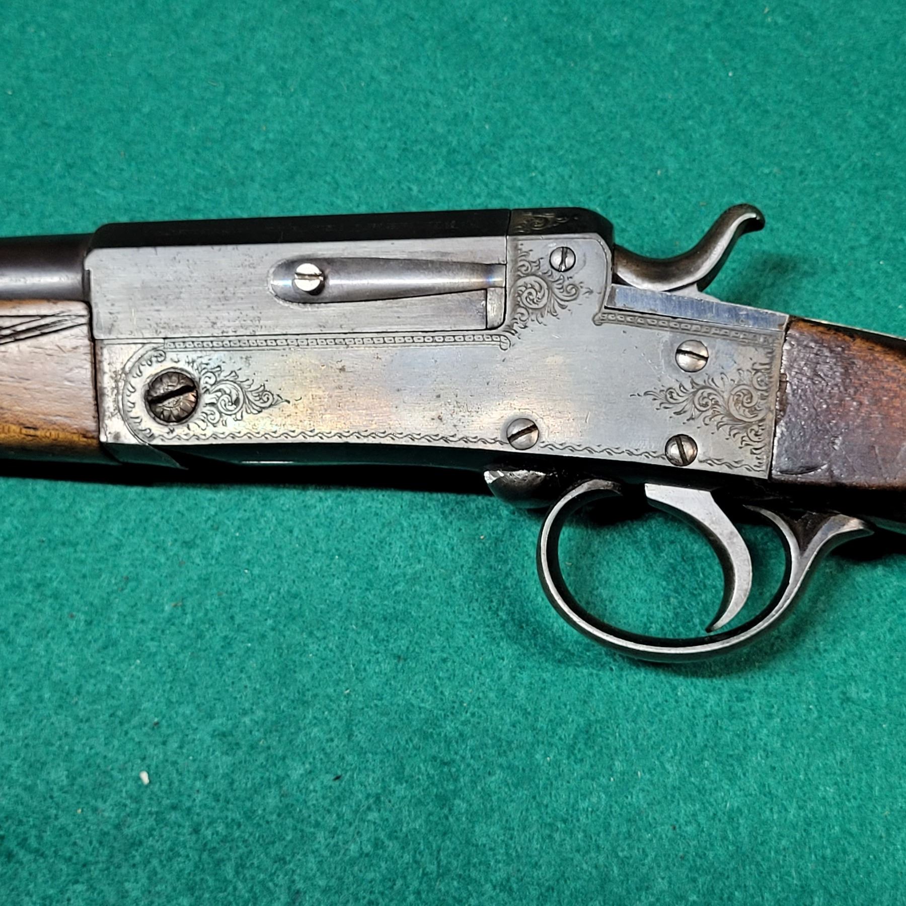 Receiver and Gripcab have scroll engraving.