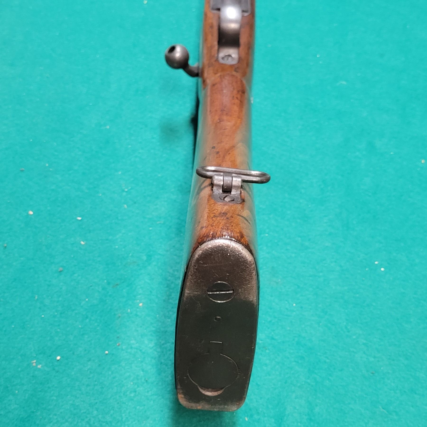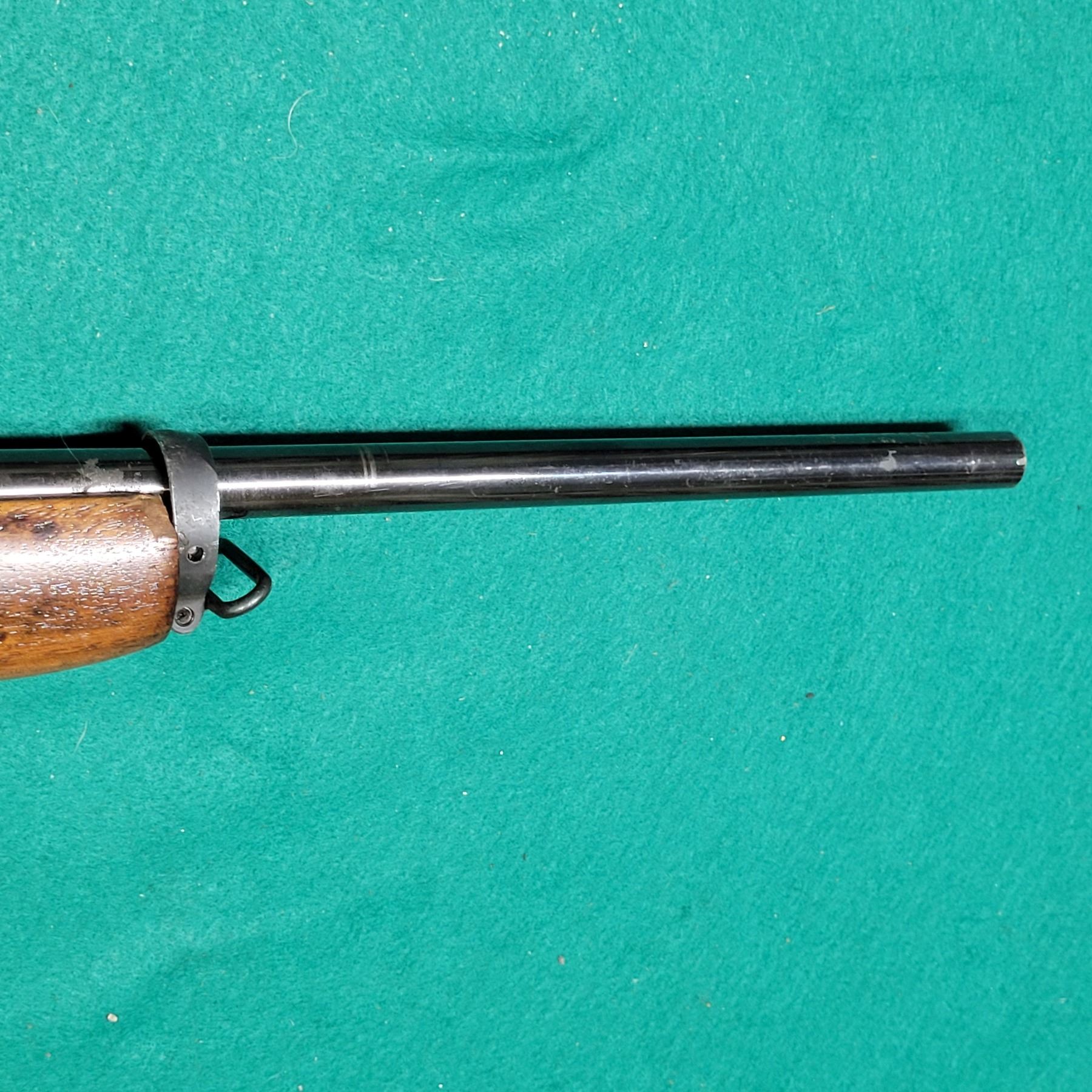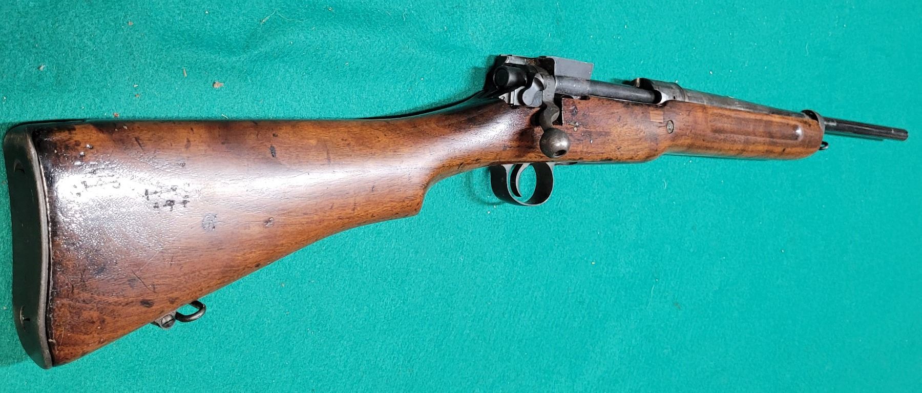 Sling swivel mounted on the toe of the stock. Currently a Single-shot bolt-action receiver. No Sights.